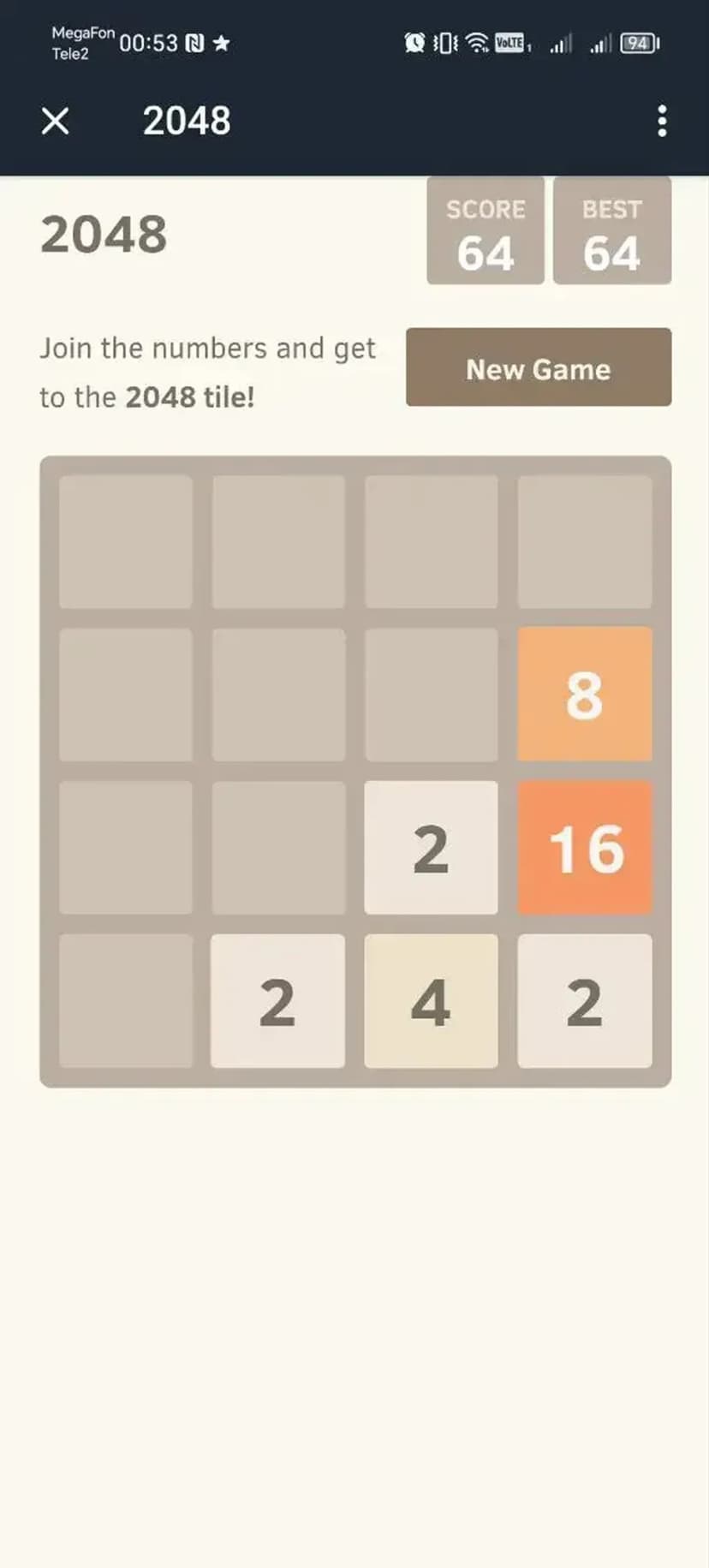 - Традиционное игровое поле 4×4 и привычные правила объединения плиток.