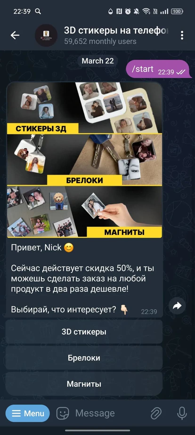 *Нажимая "Открыть в Telegram", вы перейдете к приложению 3D стикеры на телефон в мессенджере Telegram