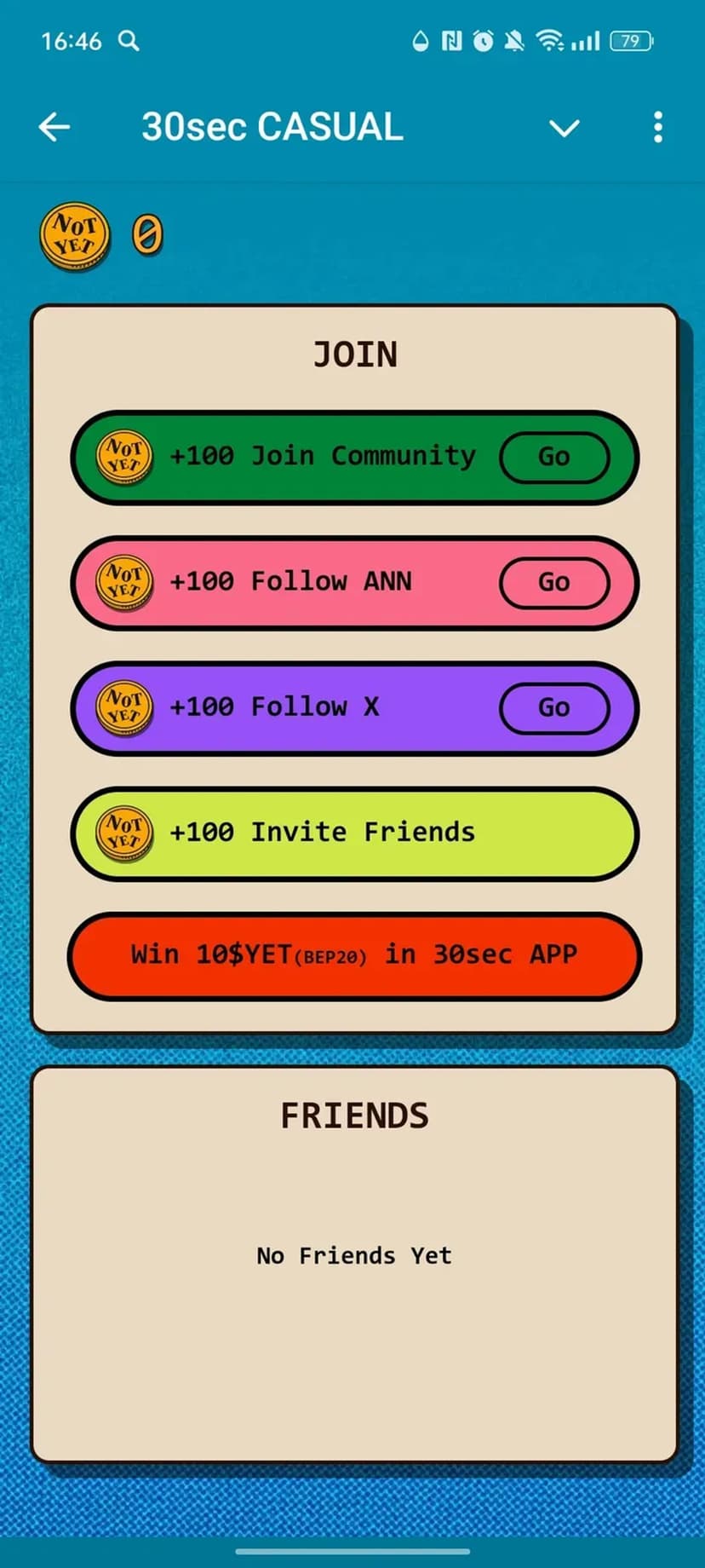 30sec CASUAL — игровой экономический эксперимент с элементами airdrop: пользователи смотрят короткие видео и за простые взаимодействия получают вознаграждение в токенах $NOTYET.