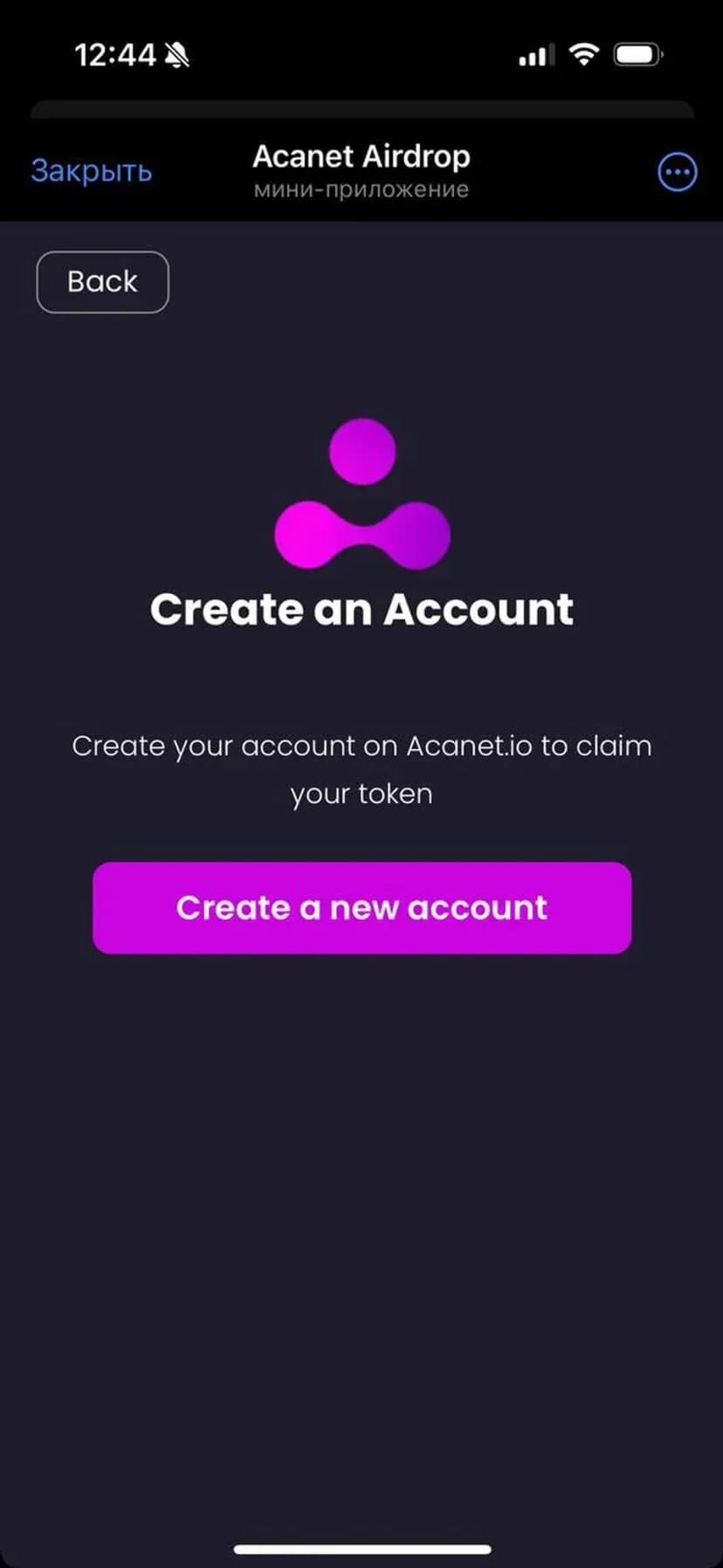 *Нажимая "Открыть в Telegram", вы перейдете к приложению Acanet Airdrop в мессенджере Telegram