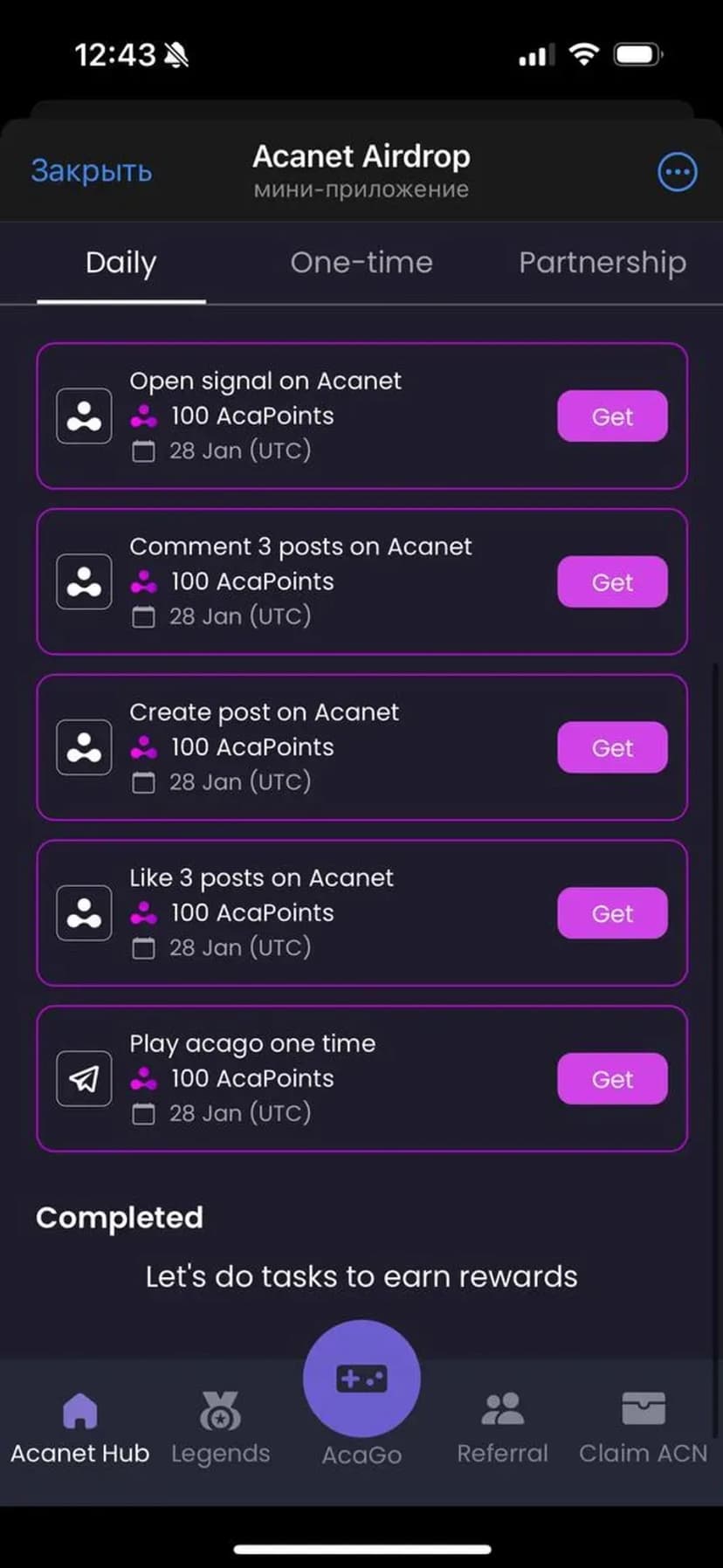 Отличия — в сравнении с аналогами (например, Zealy, Galxe, LayerZero Tasks) Acanet Airdrop делает упор на обучающие механики и социальную вовлечённость, а не только на реферальные задачи.