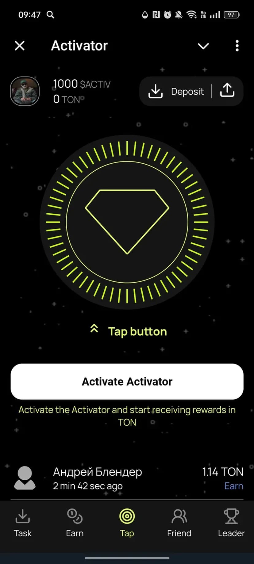 Activator предоставляет возможность получать вознаграждения в ACTIV и TON за счёт периодической активности и вложений. Интерфейс реализован через Telegram‑бота и WebApp, что обеспечивает быстрый доступ без отдельной установки программ.