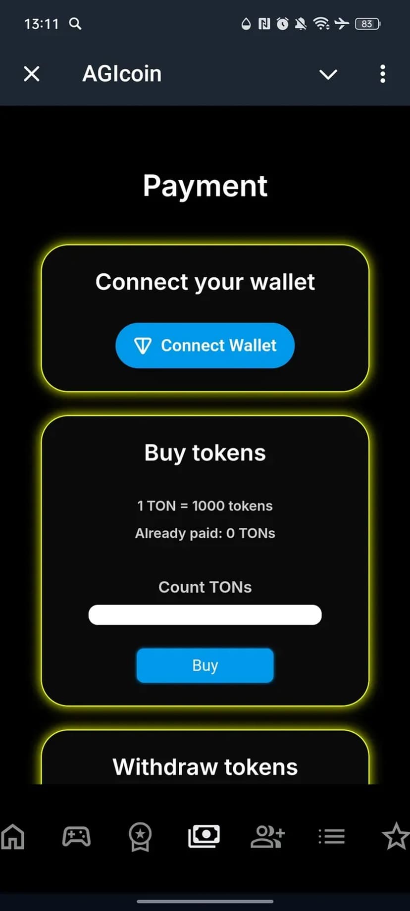 - Интеграции: поддержка Telegram Wallet для операций с TON и использование Telegram API для авторизации и взаимодействия; для выплат необходимо подключить TON‑кошелёк.