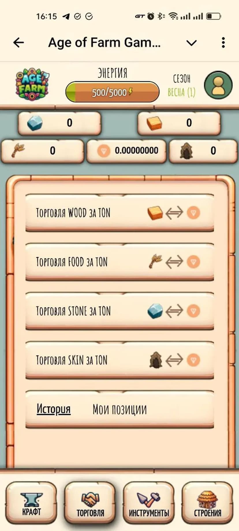 Вся игровая логика реализована внутри Telegram-бота: управление через кнопки и меню в чате, без установки отдельного приложения. Избыточные материалы можно продавать другим игрокам и получать криптовалюту TON прямо внутри игры.