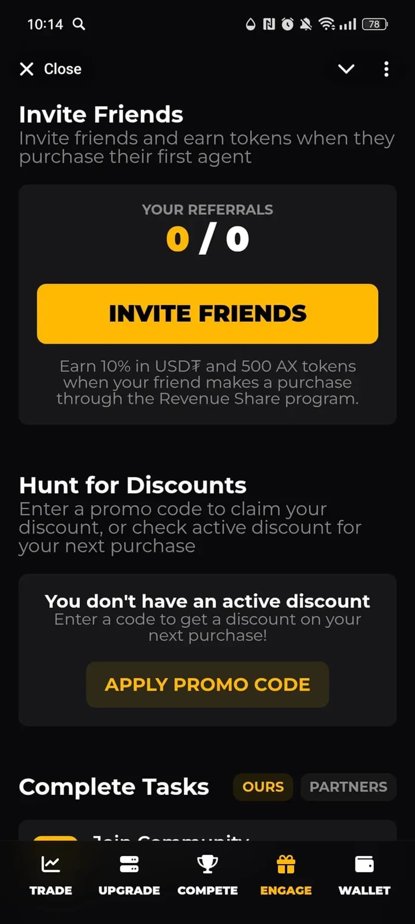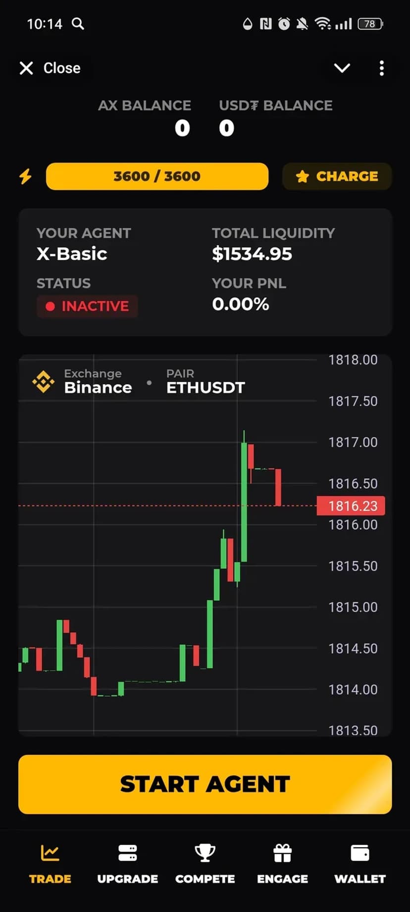 - Внутренняя экономика: начисление $AX для улучшения агента и внутриигровых операций; USDT доступен для вывода.