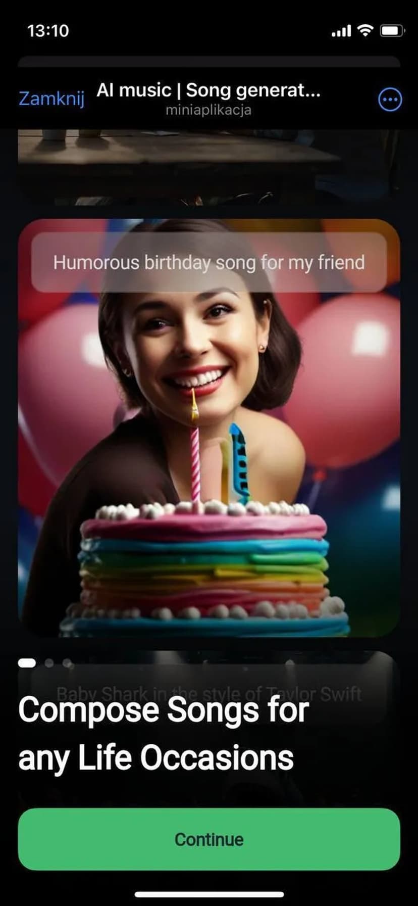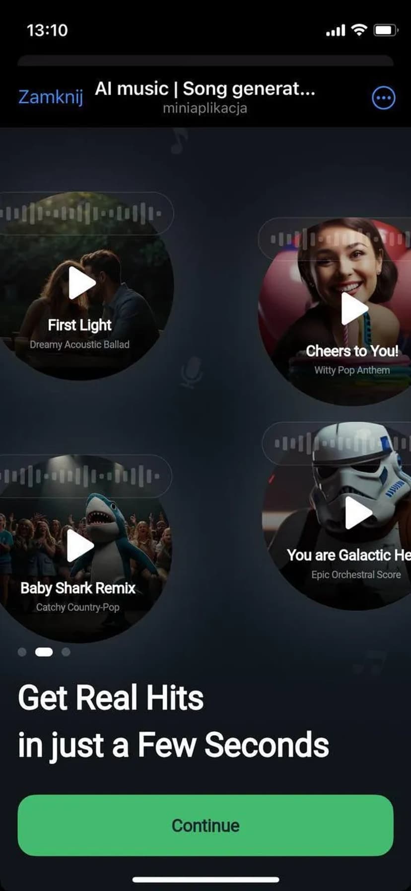 *Нажимая "Открыть в Telegram", вы перейдете к приложению AI music | Song generator в мессенджере Telegram