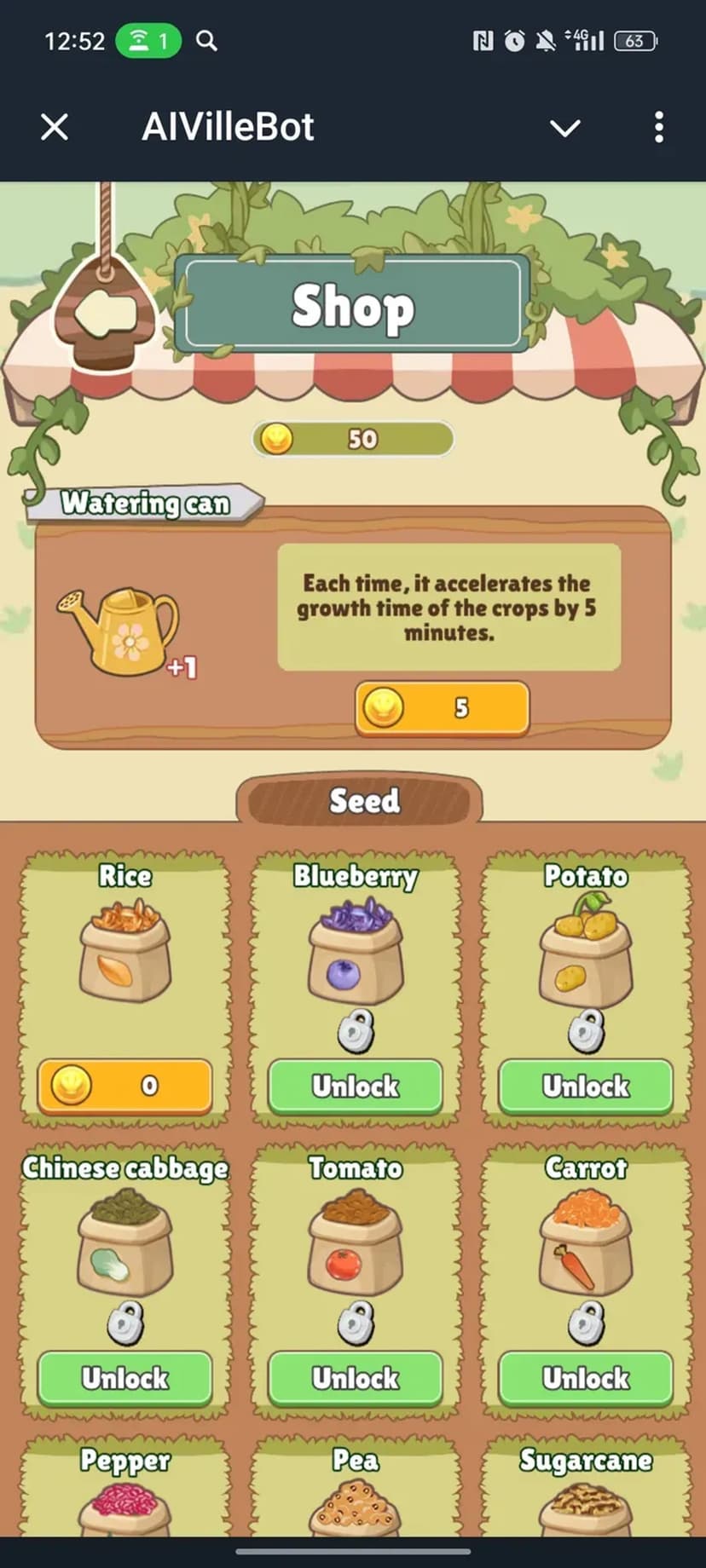 AIVilleBot — интерактивный Telegram-бот, предлагающий симуляцию фермерской жизни с управляемыми искусственным интеллектом персонажами. Игроки создают собственных AI-персонажей, занимаются выращиванием культур и соревнуются за ресурсы в сообществе.