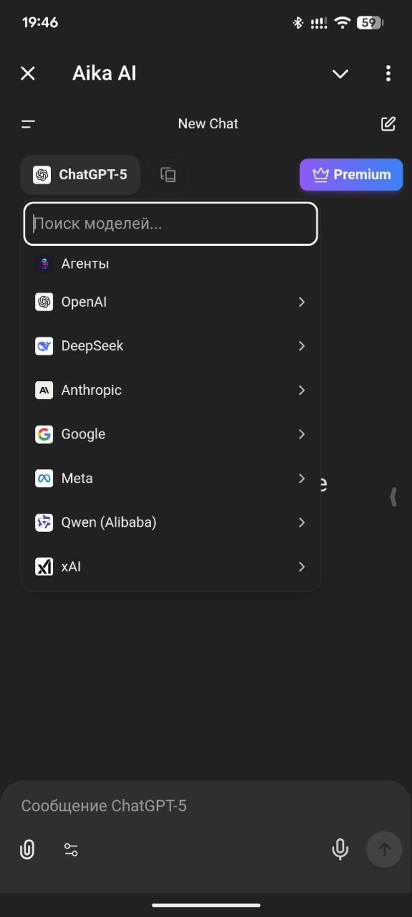 Aika AI объединяет на одной платформе доступ к современным нейросетям для генерации текстов, изображений, кода и анализа информации прямо в Telegram. Интерфейс стартового экрана минималистичный: список доступных моделей, поле для ввода запроса и выбор типа задачи.