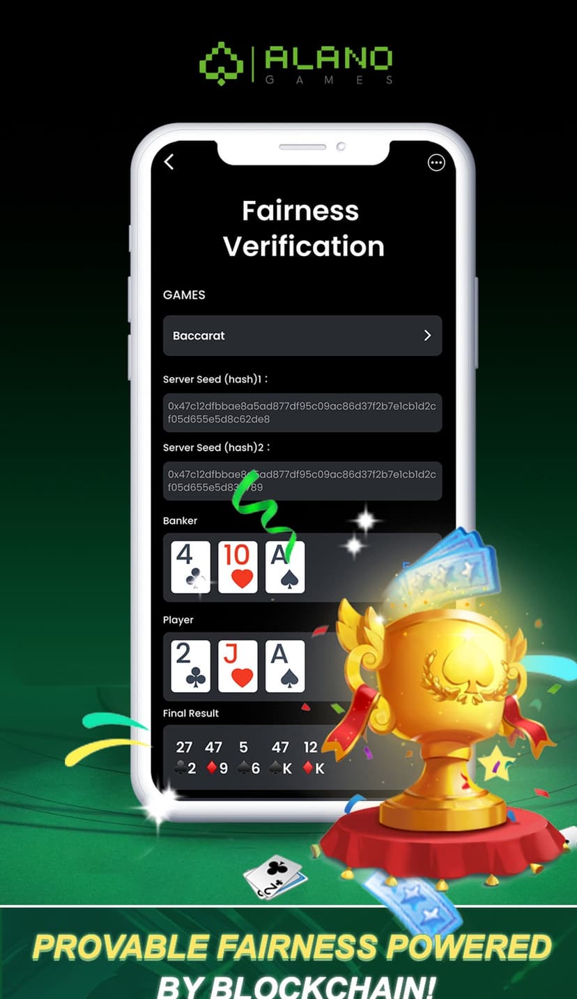 - Участие в случайных играх с прозрачной механикой и автоматическим начислением $ALANO.
