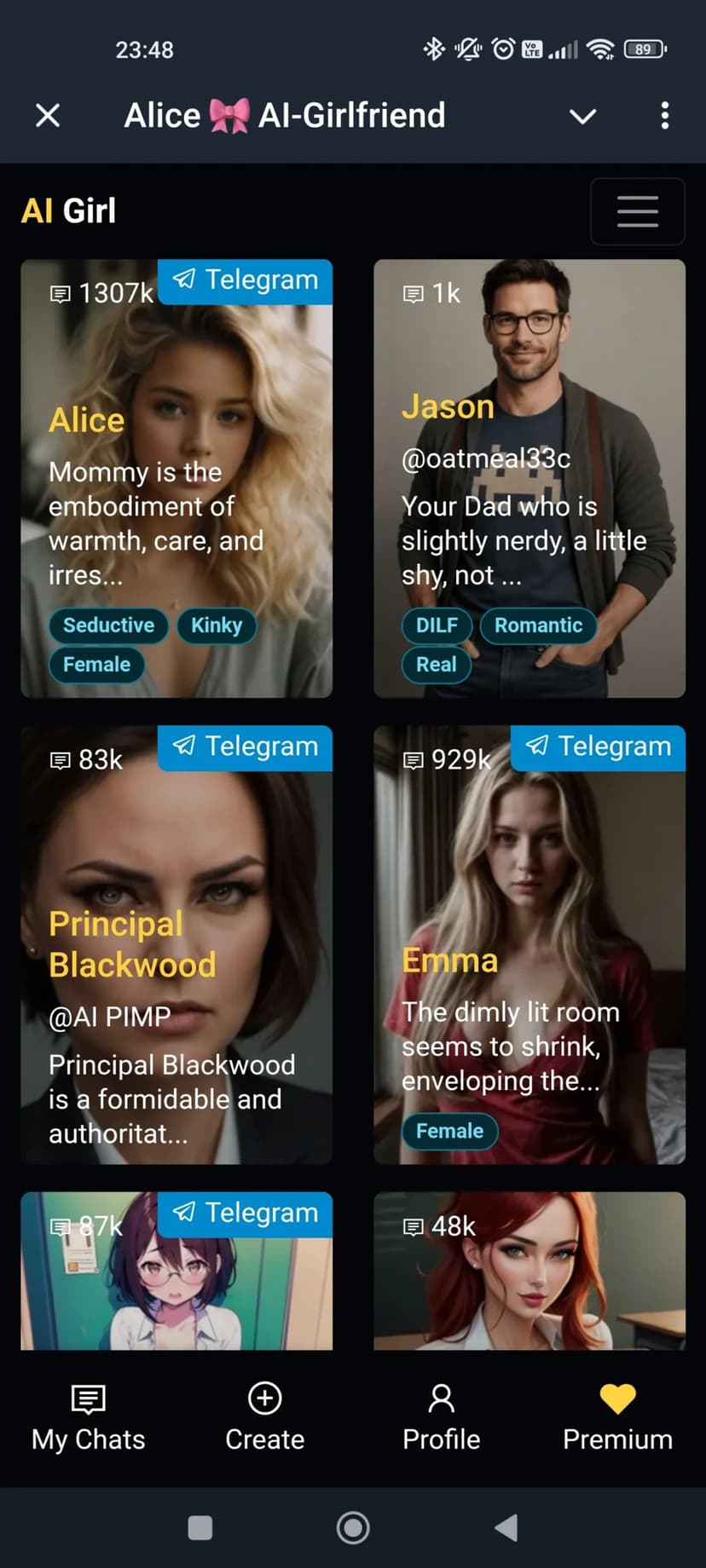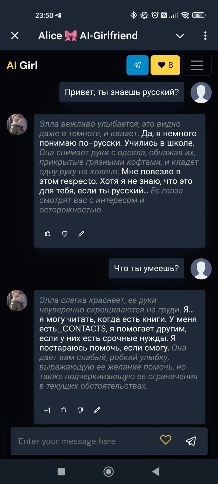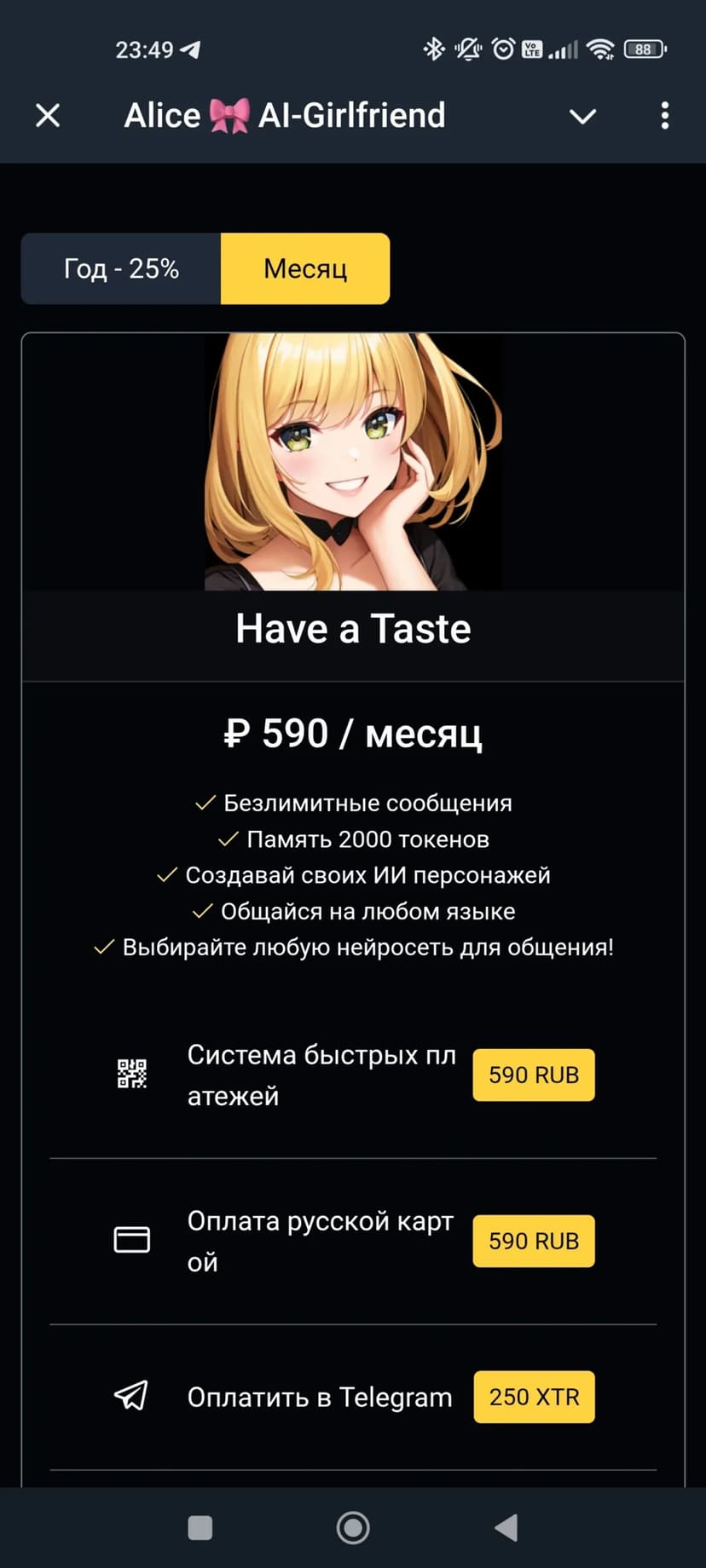 *Нажимая "Открыть в Telegram", вы перейдете к приложению Alice AI Girlfriend в мессенджере Telegram