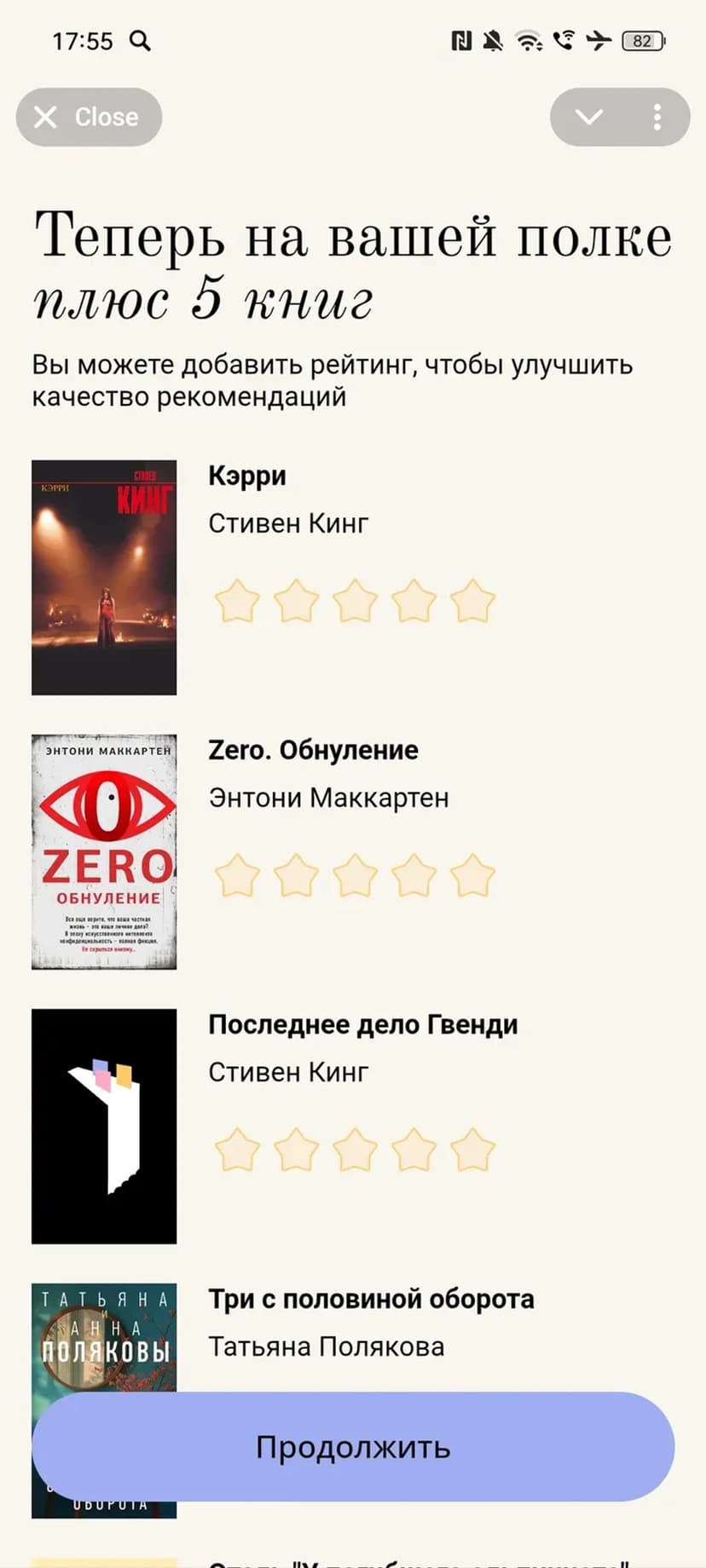 - Управление библиотекой: добавление книг, пометка завершённых и текущих произведений, создание подборок.