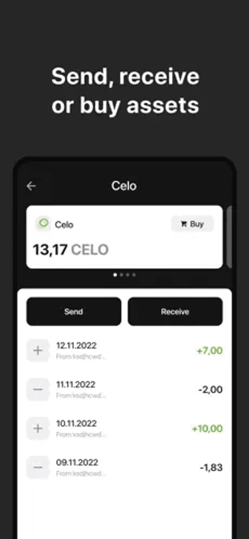 - Операции с кошельком: пополнение, отправка и получение средств, просмотр истории транзакций.