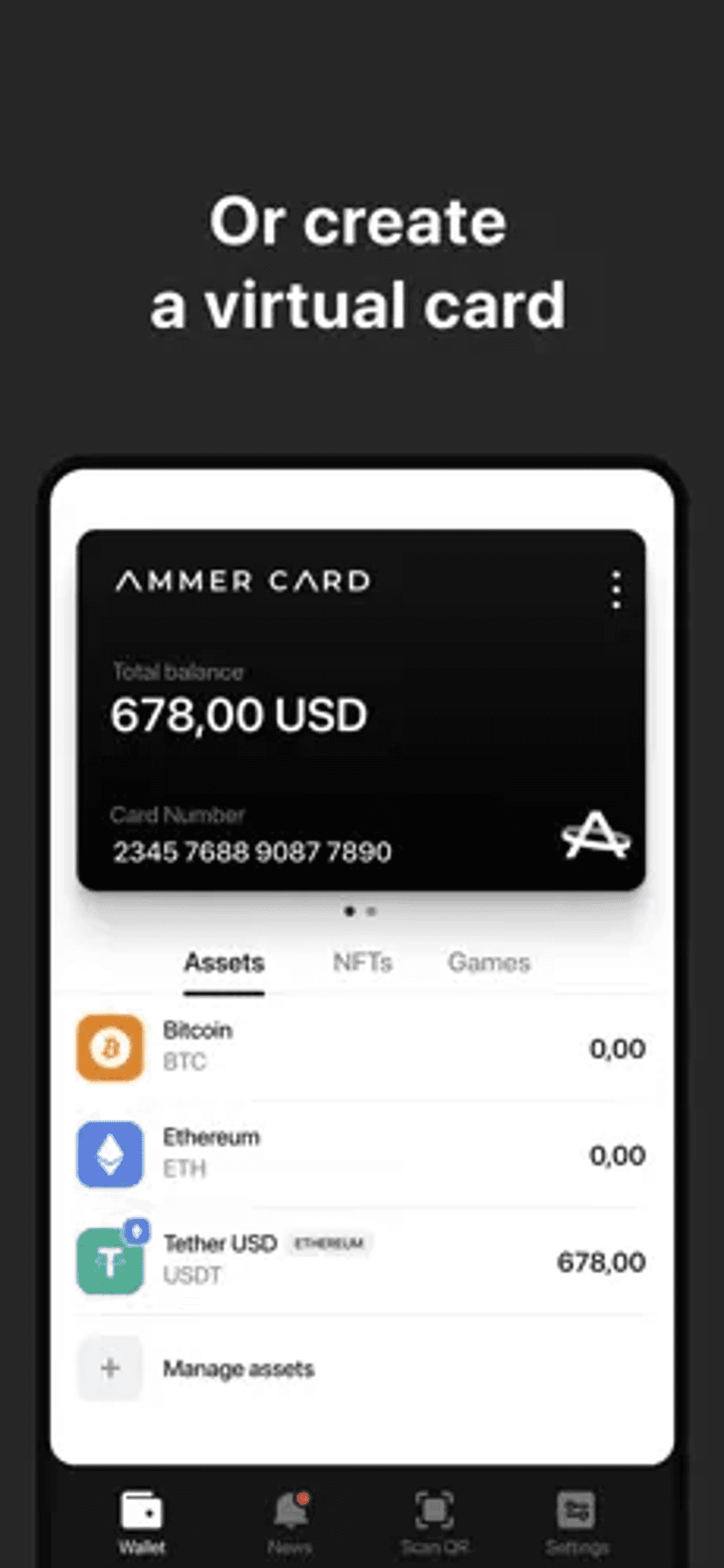 Управление криптовалютами и NFT с поддержкой NFC‑платежей через Ammer Card