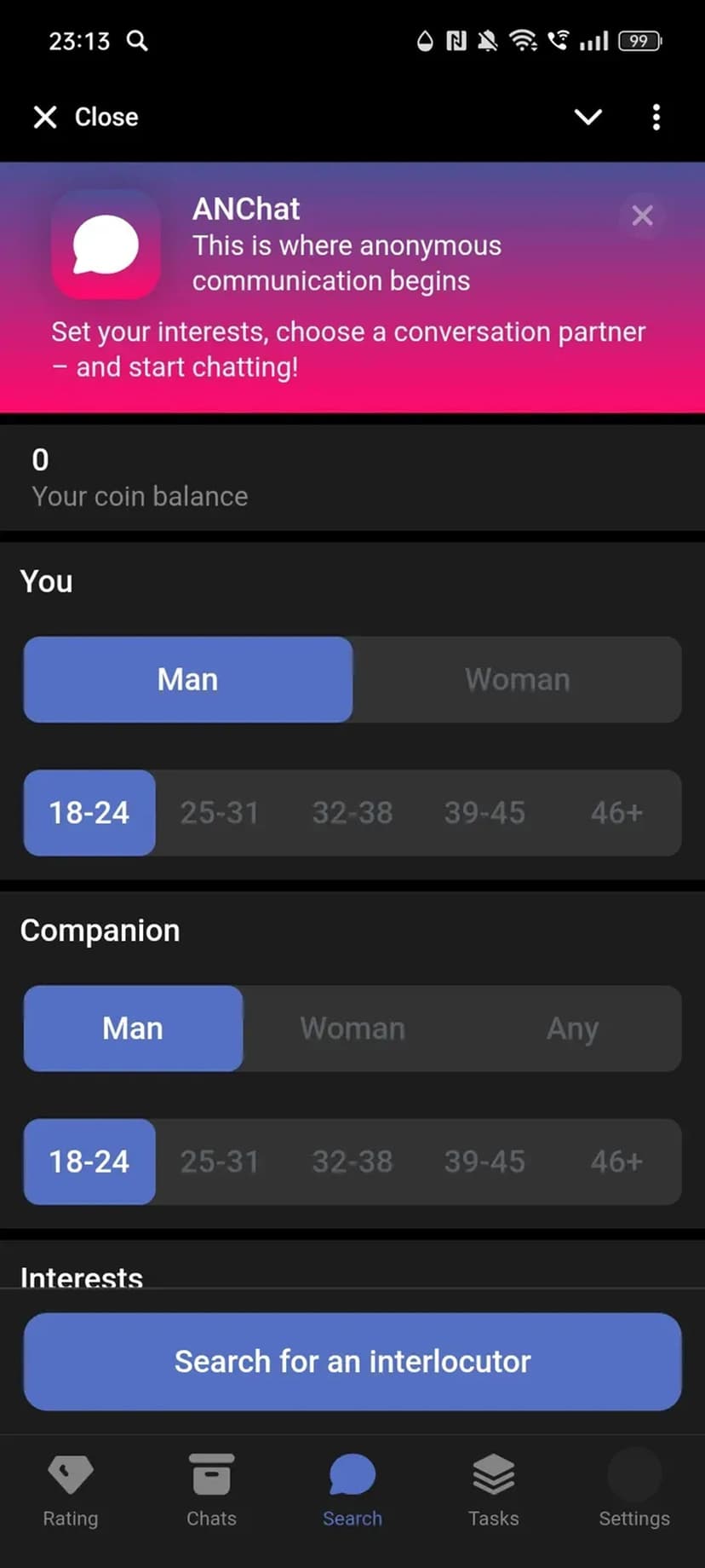 Анонимные чаты и знакомства с фильтрами по интересам и внутриигровой монетизацией