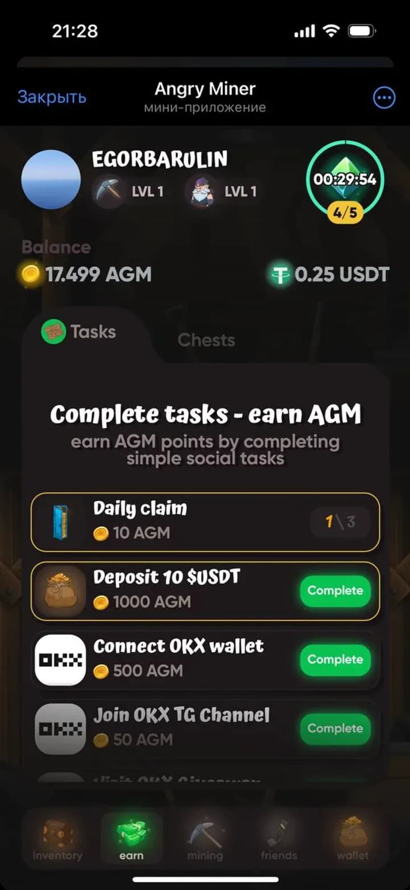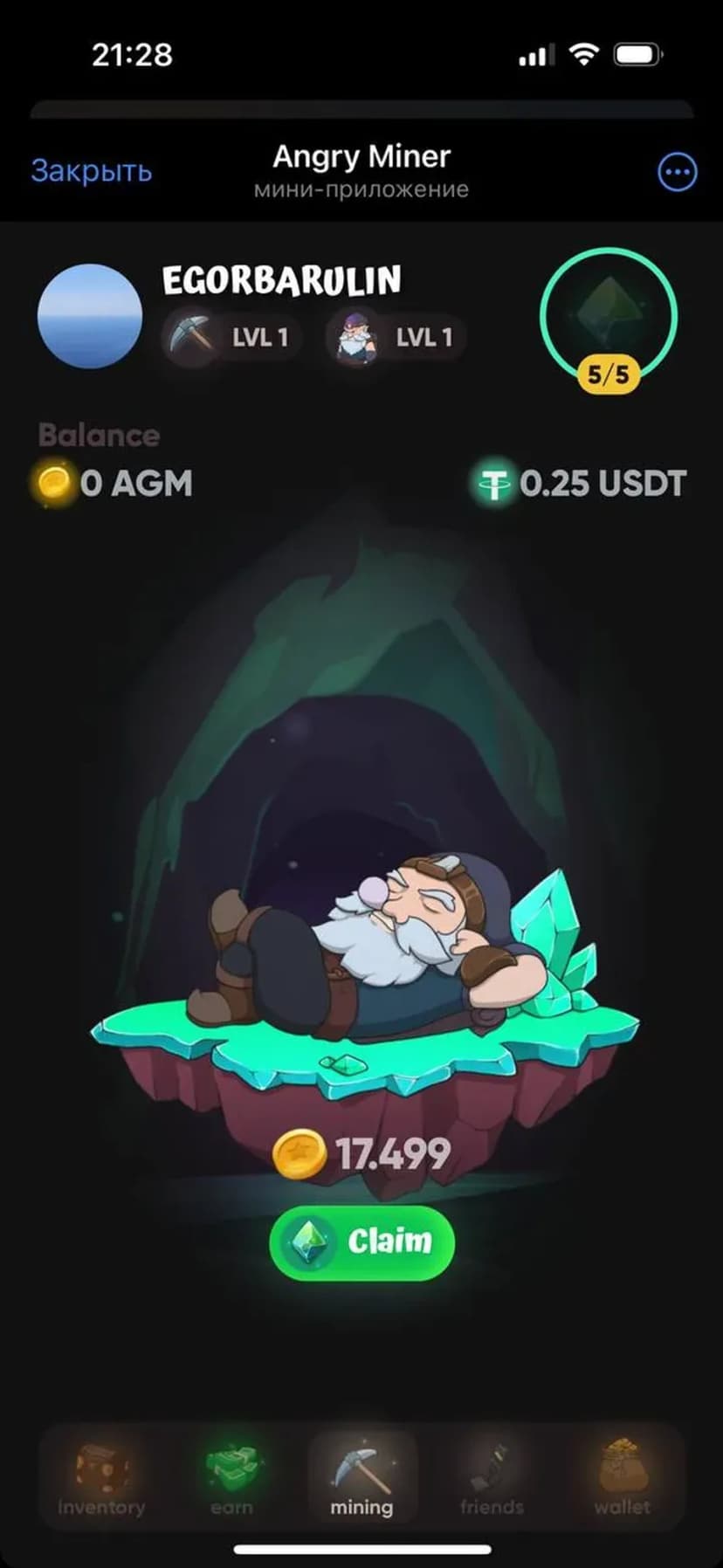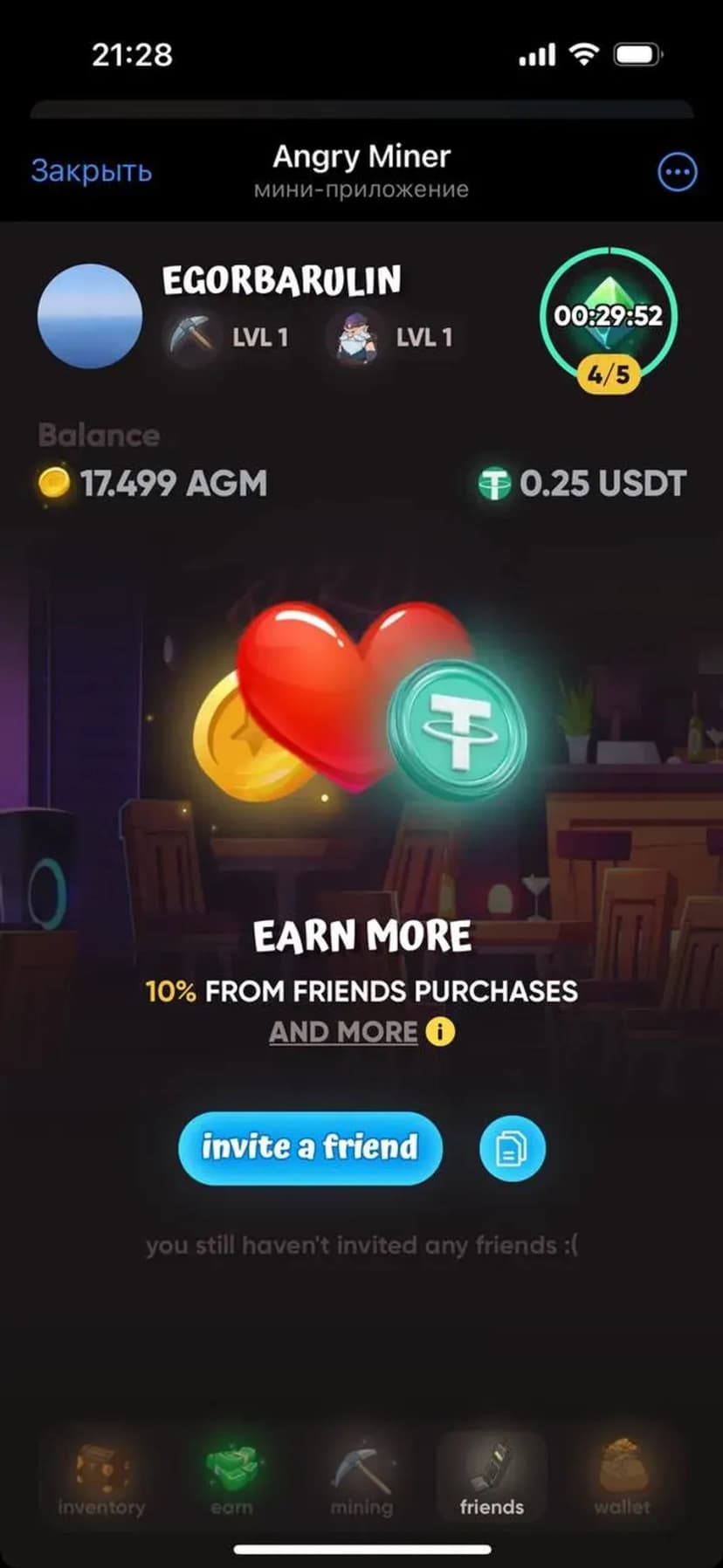 *Нажимая "Открыть в Telegram", вы перейдете к приложению Angry Miner в мессенджере Telegram