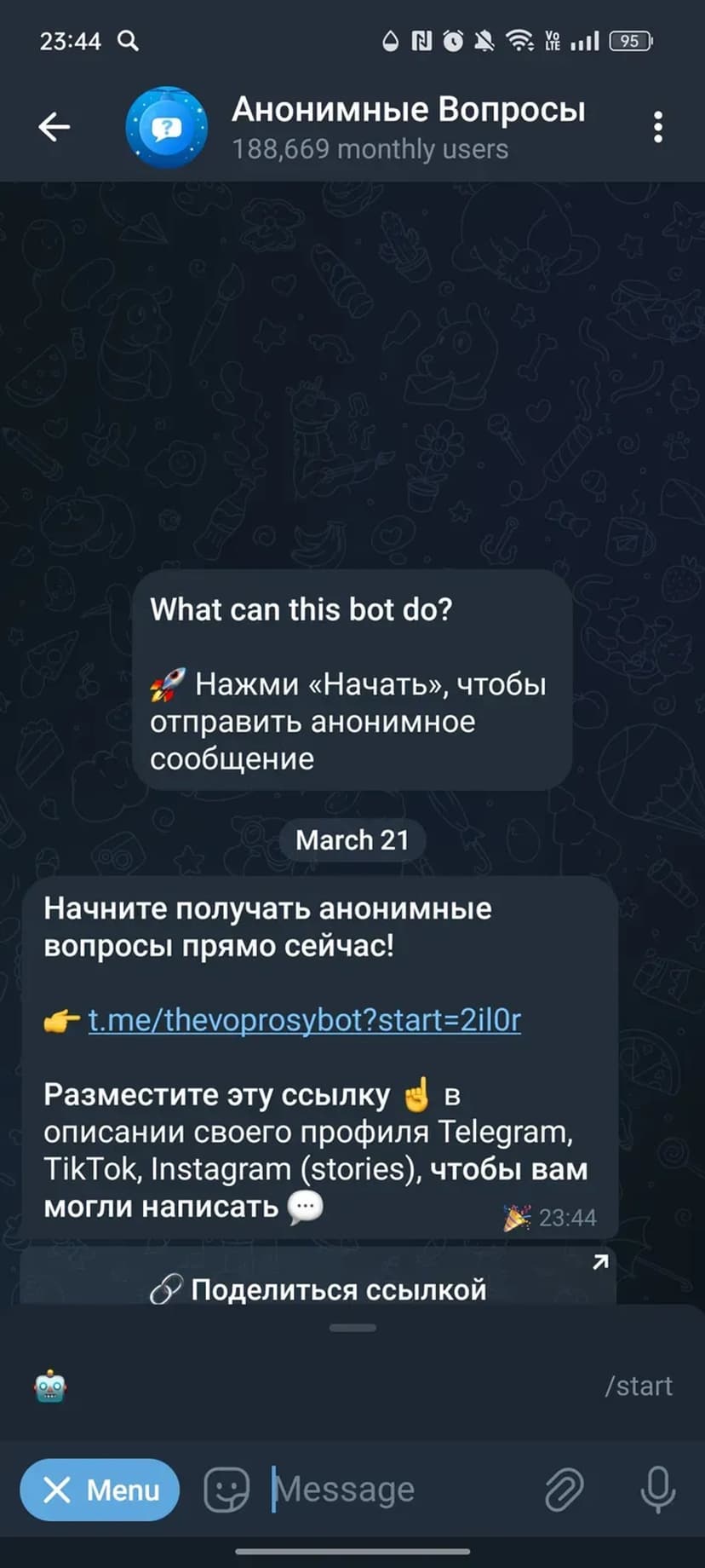 Принимайте и отвечайте на анонимные вопросы в Telegram через личную ссылку