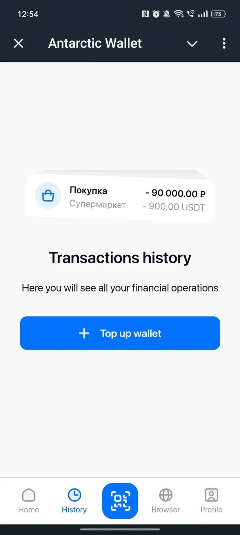 Antarctic Wallet — сервис для оплат по QR‑коду, встроенный в Telegram. Бот позволяет совершать платежи в магазинах через сканирование QR‑кодов, сокращая необходимость в отдельных банковских приложениях и ускоряя процесс расчётов.