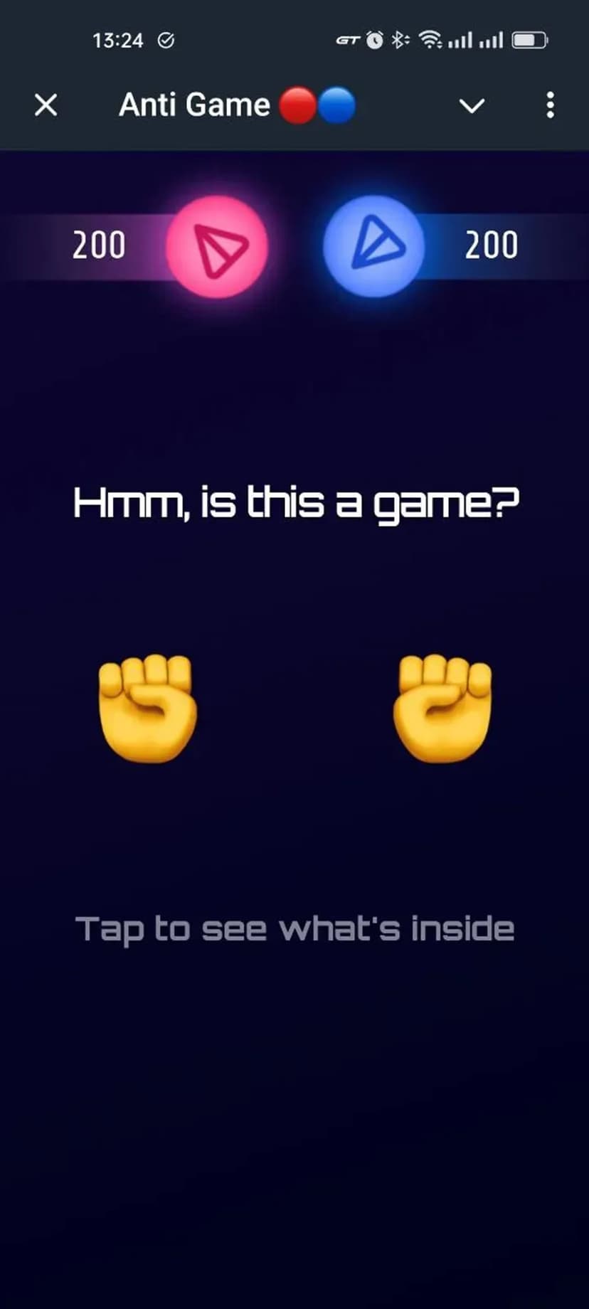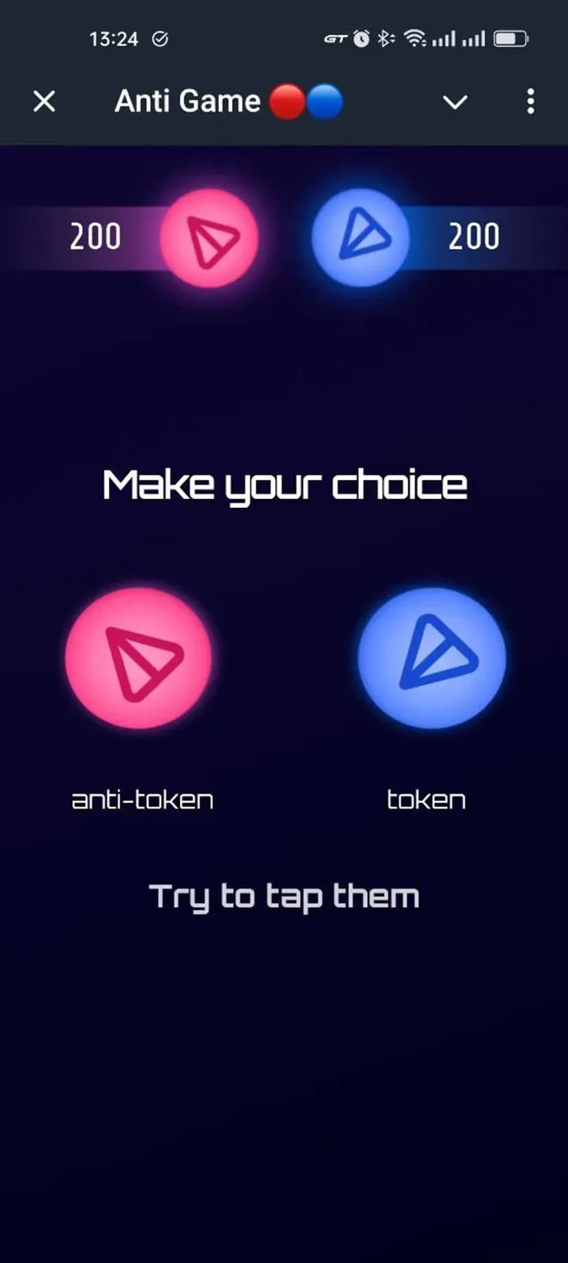Anti Game π΄π΅ β ΠΈΠ³ΡΠΎΠ²ΠΎΠΉ ΠΏΡΠΎΠ΅ΠΊΡ Ρ ΠΌΠ°ΠΉΠ½ΠΈΠ½Π³βΠΌΠ΅Ρ Π°Π½ΠΈΠΊΠΎΠΉ ΠΈ ΡΠ»Π΅ΠΌΠ΅Π½ΡΠ°ΠΌΠΈ ΡΡΡΠ°ΡΠ΅Π³ΠΈΡΠ΅ΡΠΊΠΎΠ³ΠΎ Π²ΡΠ±ΠΎΡΠ°. ΠΠ³ΡΠΎΠΊΠΈ ΠΏΡΠΈΠ½ΠΈΠΌΠ°ΡΡ ΡΠ΅ΡΠ΅Π½ΠΈΡ ΠΌΠ΅ΠΆΠ΄Ρ Π΄Π²ΡΠΌΡ ΠΏΡΠΎΡΠΈΠ²ΠΎΠΏΠΎΠ»ΠΎΠΆΠ½ΡΠΌΠΈ Π½Π°ΠΏΡΠ°Π²Π»Π΅Π½ΠΈΡΠΌΠΈ: Π΄ΠΎΠ±ΡΡΠ° ΡΠΎΠΊΠ΅Π½ΠΎΠ² ΠΈΠ»ΠΈ Π°Π½ΡΠΈβΡΠΎΠΊΠ΅Π½ΠΎΠ². ΠΡ Π²ΡΠ±ΡΠ°Π½Π½ΠΎΠ³ΠΎ ΠΏΡΡΠΈ Π·Π°Π²ΠΈΡΠΈΡ ΡΠ°Π·ΠΌΠ΅Ρ ΡΠΈΠ½Π°Π»ΡΠ½ΡΡ Π²ΠΎΠ·Π½Π°Π³ΡΠ°ΠΆΠ΄Π΅Π½ΠΈΠΉ ΠΈ ΡΠ°Π·Π²ΠΈΡΠΈΠ΅ ΡΠΎΠ±ΡΡΠΈΠΉ Π²Π½ΡΡΡΠΈ ΠΏΡΠΈΠ»ΠΎΠΆΠ΅Π½ΠΈΡ.