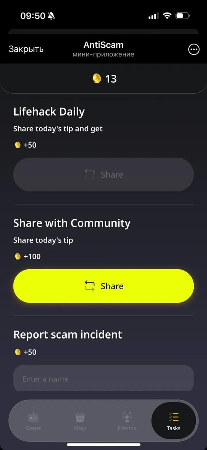 Геймифицированное обнаружение мошенников: обучайся, репорть и зарабатывай монеты.