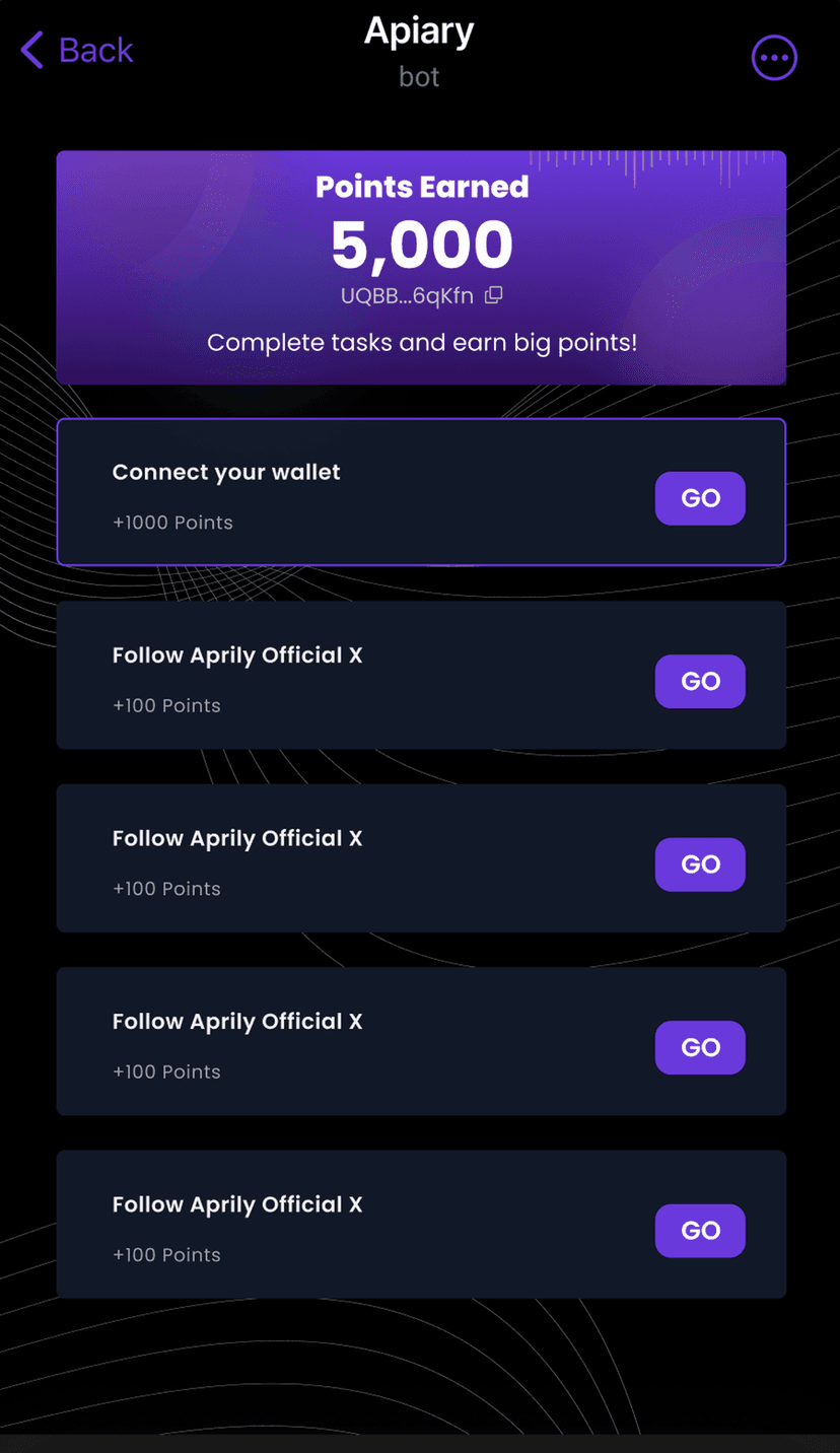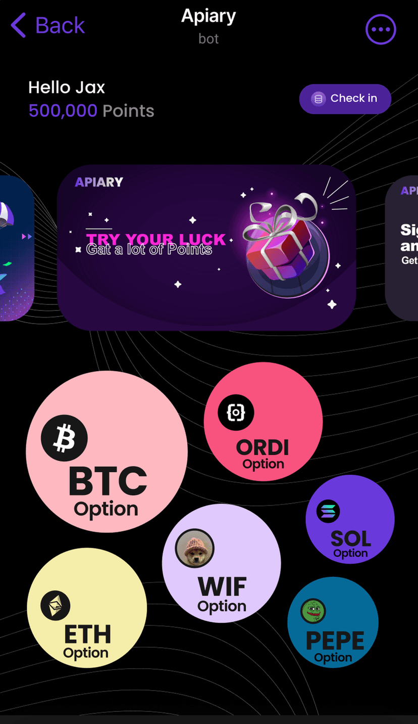 Apiary предлагает торговлю опционами в игровом формате прямо в чате. Интуитивный и быстрый интерфейс адаптирован под мобильные устройства и не требует отдельной регистрации — достаточно Telegram‑аккаунта. Приложение делает финансовые инструменты проще и привлекательнее за счёт элементов соревнования.