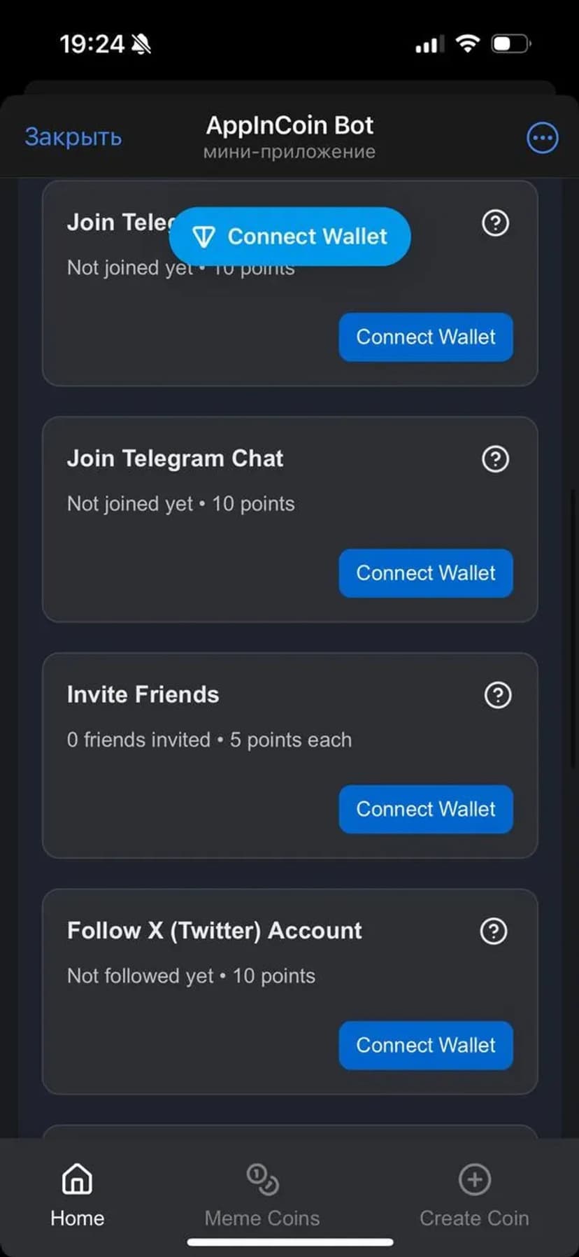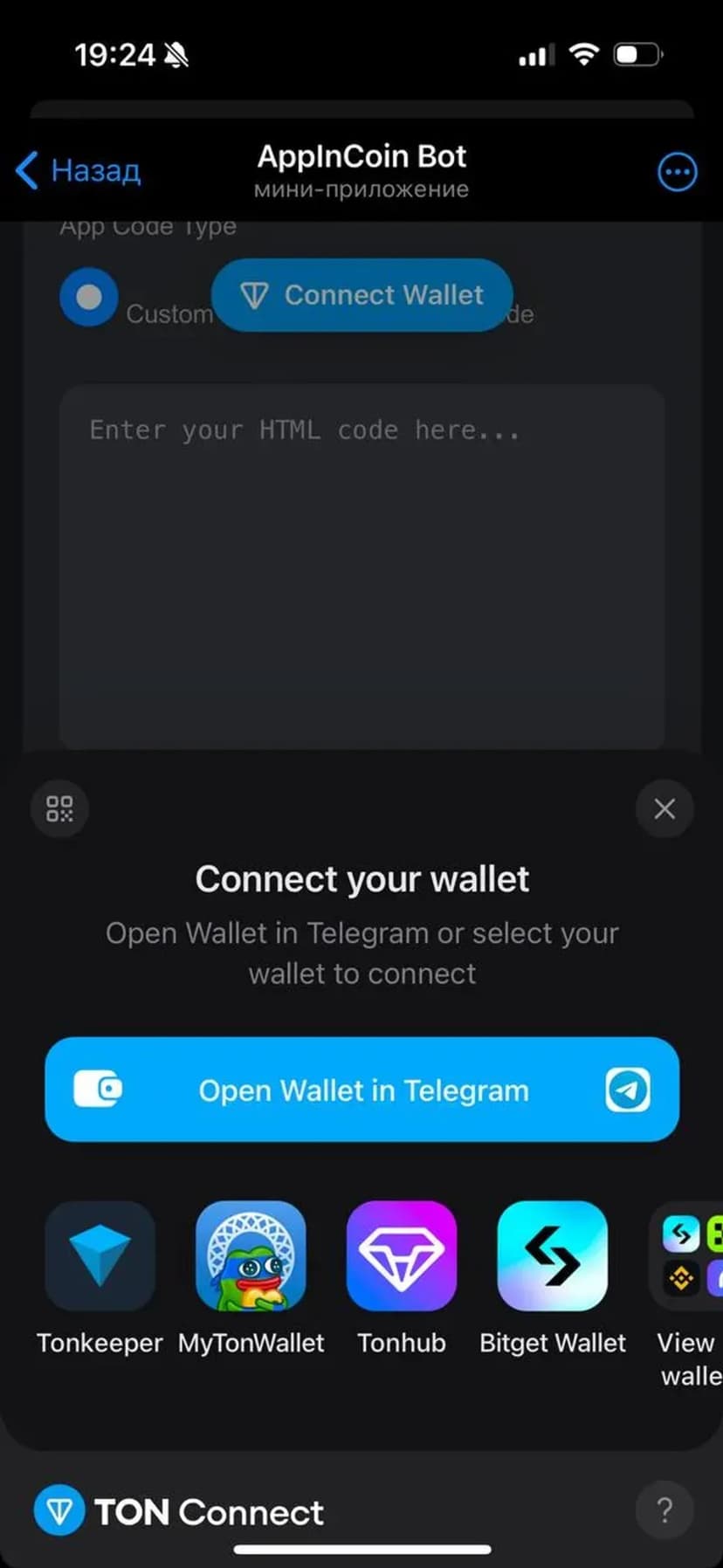 *Нажимая "Открыть в Telegram", вы перейдете к приложению AppInCoin Bot в мессенджере Telegram