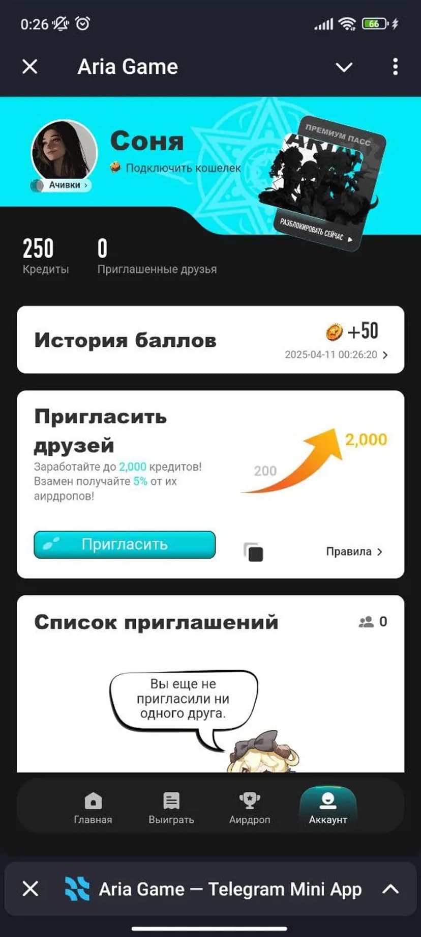 *Нажимая "Открыть в Telegram", вы перейдете к приложению Aria Game в мессенджере Telegram