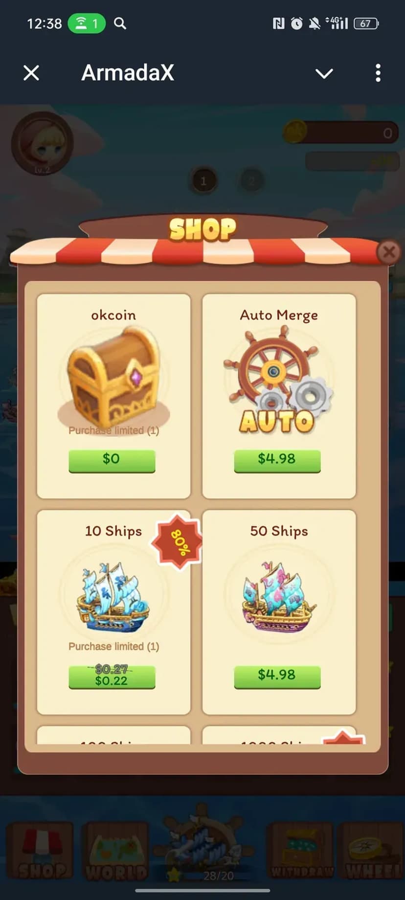 ArmadaX объединяет игровые механики и возможности заработка: вы управляете виртуальным флотом, прокачиваете корабли и собираете внутриигровую валюту, которую затем можно конвертировать в USDT.