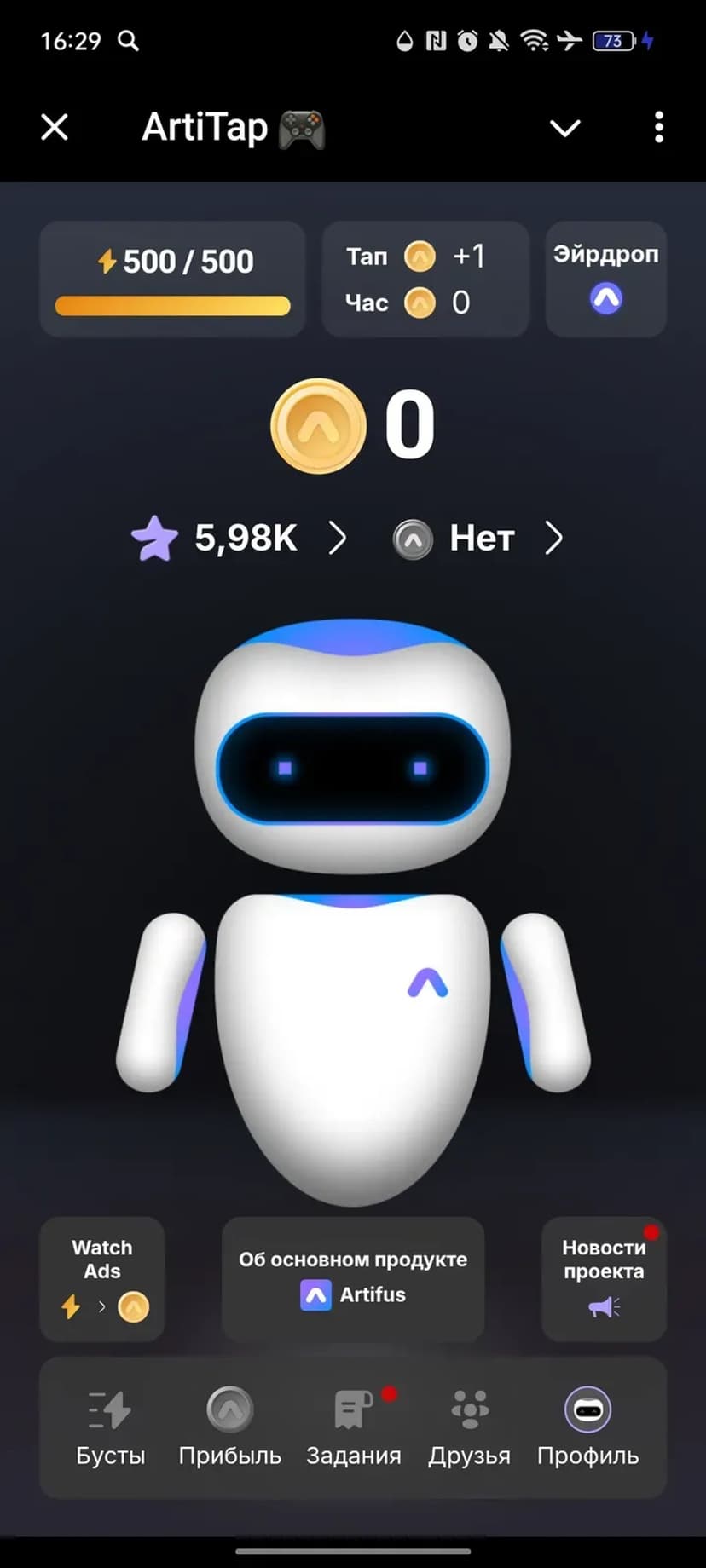 Кликер-RPG: прокачивай ИИ Арти, стейкинг и пассивный доход