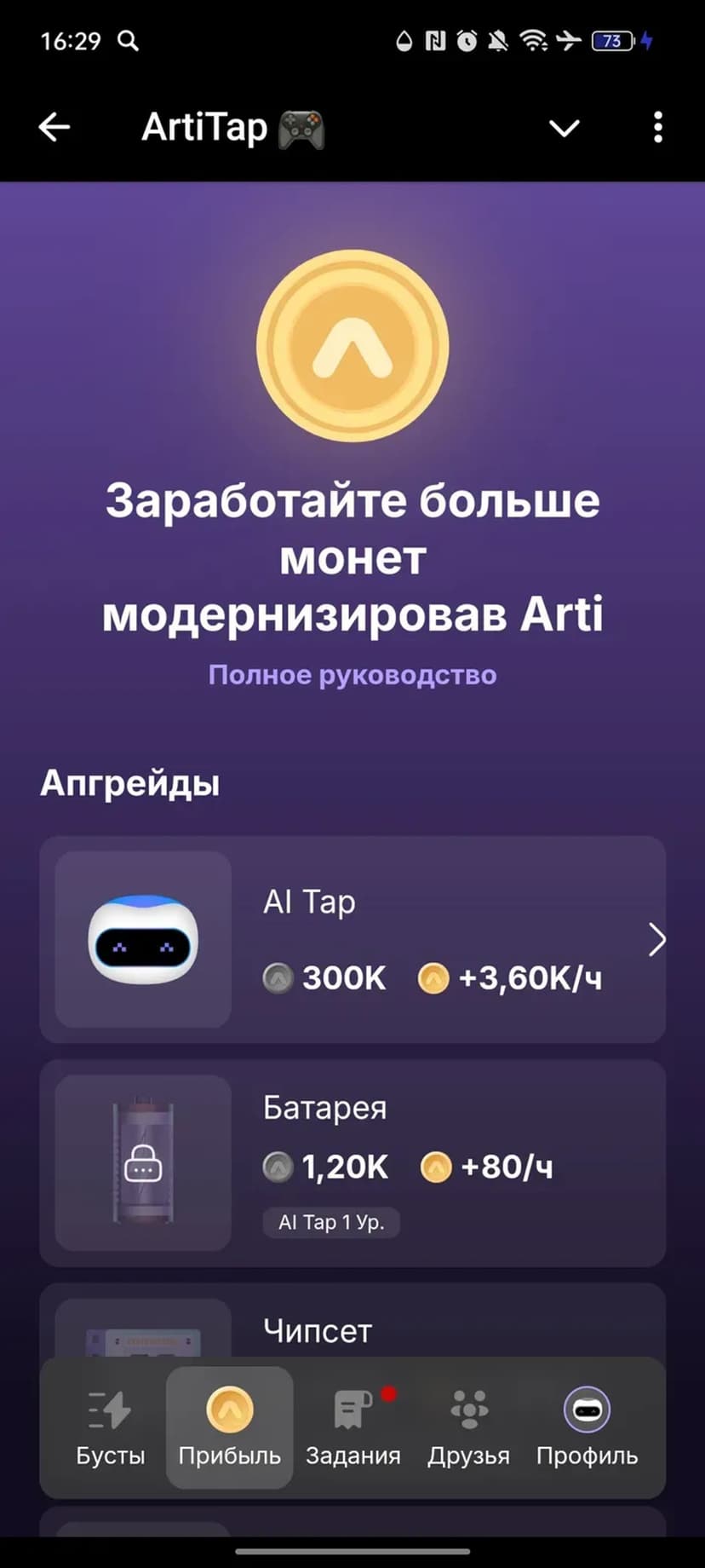- Пассивный доход: Арти продолжает генерировать ресурсы, даже когда вы отсутствуете.