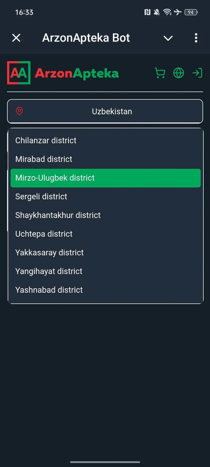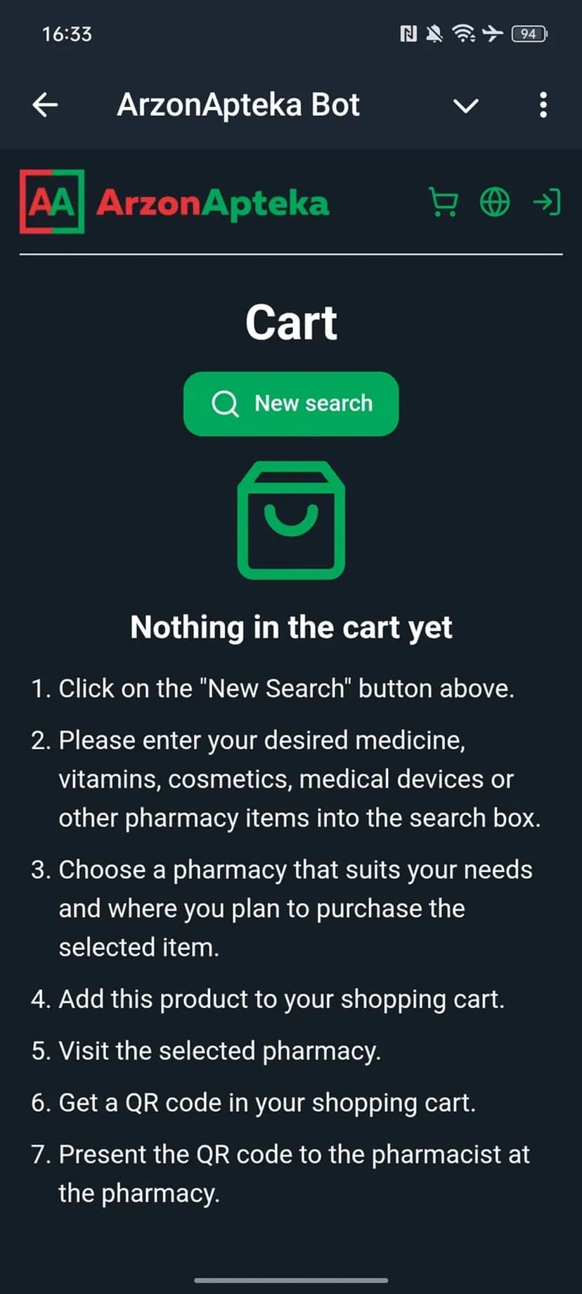 ArzonApteka Bot помогает быстро находить лекарства по названию или категории, показывает наличие и ориентировочную цену в аптеках. Сервис доступен на русском и узбекском языках и поддерживает мобильный доступ для Android и iOS через QR‑код.