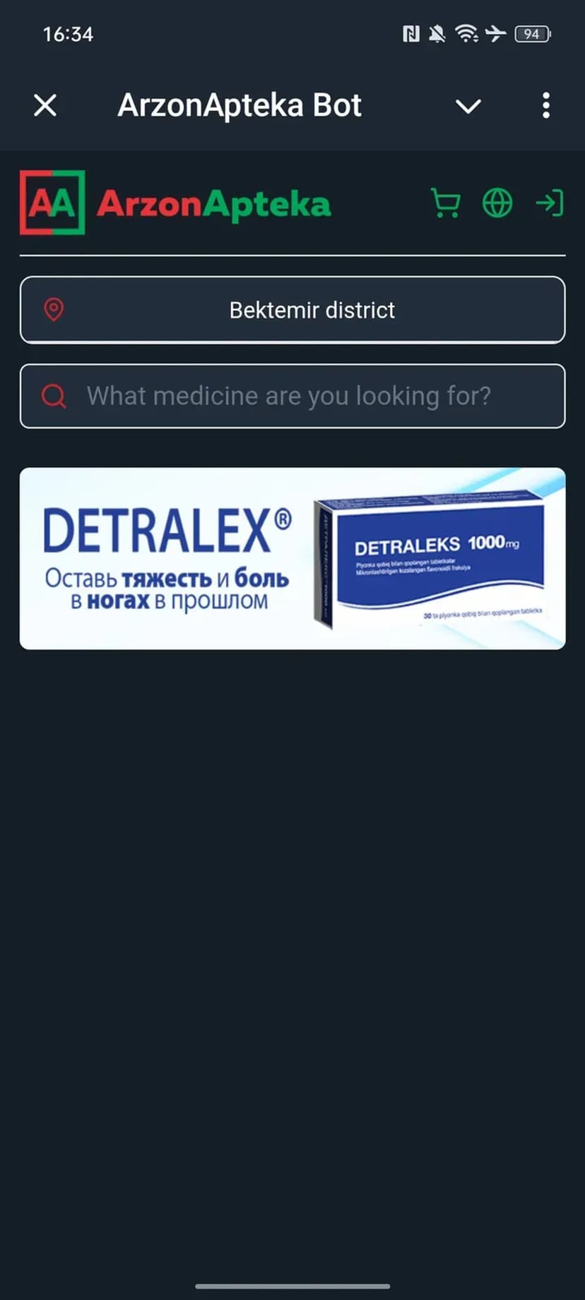 *Нажимая "Открыть в Telegram", вы перейдете к приложению ArzonApteka Bot в мессенджере Telegram