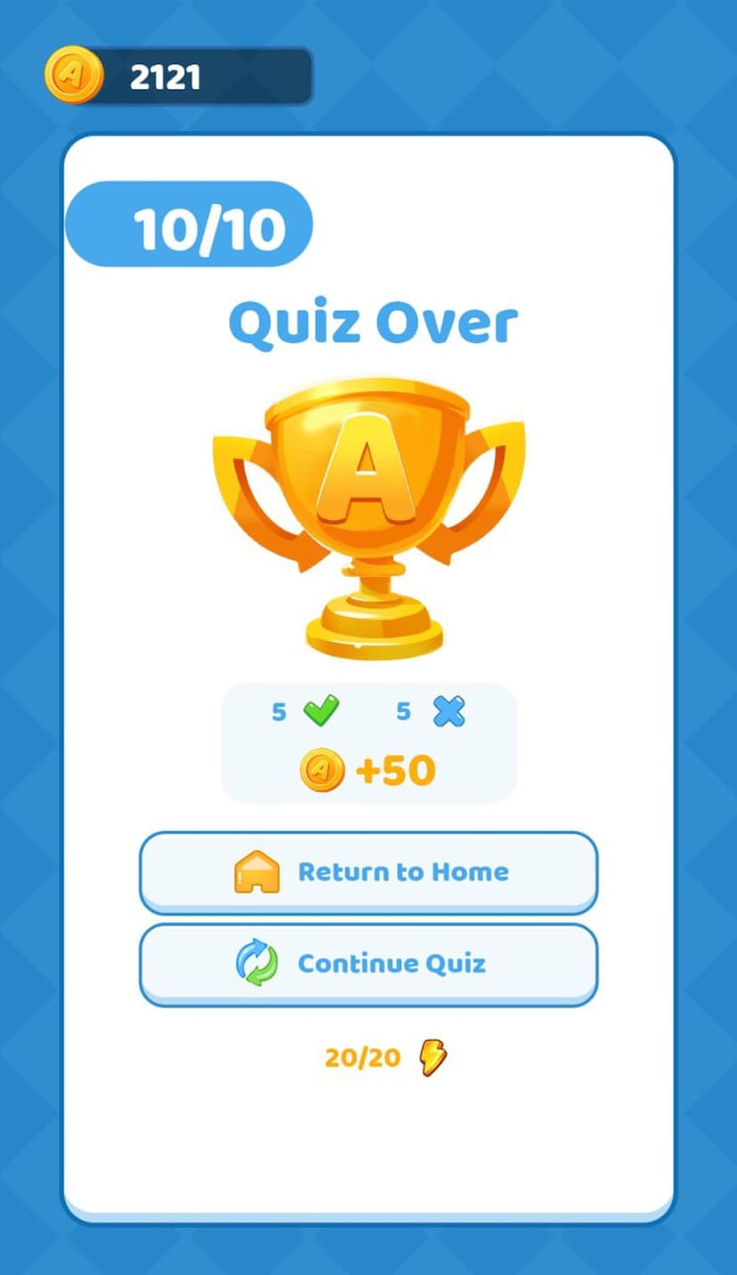 - Накопление монет — мгновенное начисление за верные ответы.