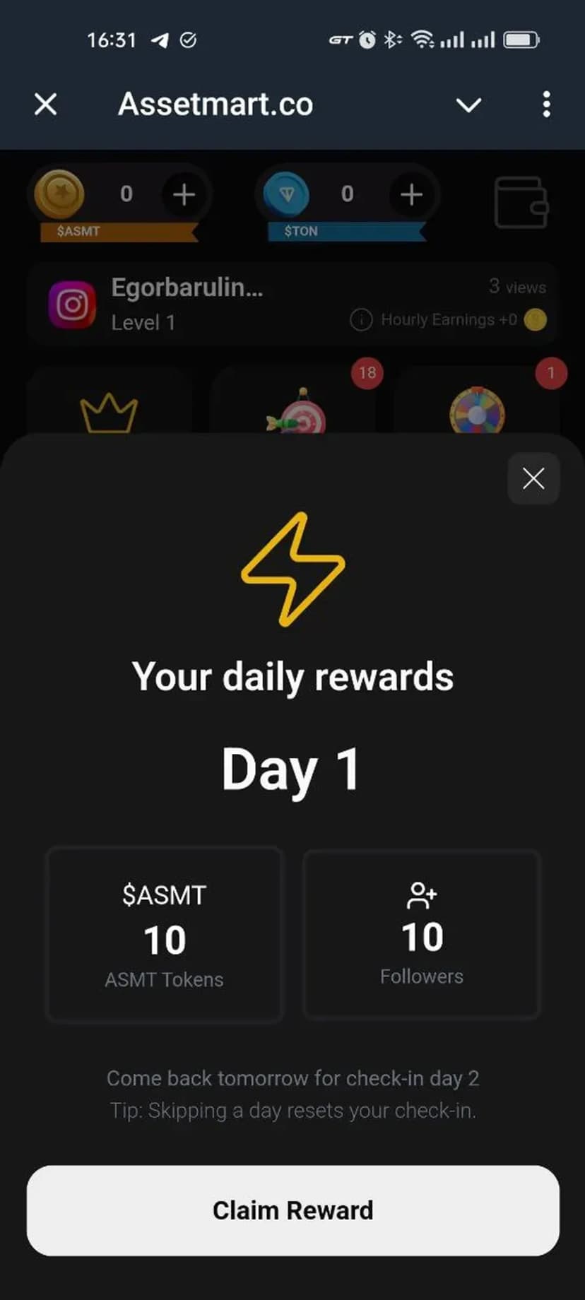 Встроенные механики поощряют активность: за регулярную игру и выполнение заданий начисляются награды. Для самых вовлечённых пользователей анонсирован будущий airdrop токенов AssetMart.