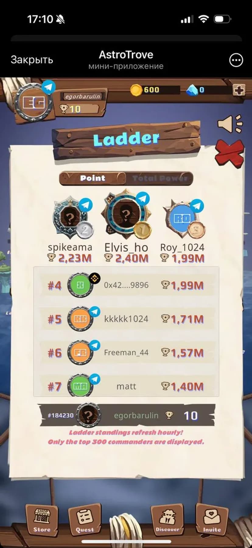 AstroTrove — игра внутри мессенджера с развитым сообществом (более 74 тысяч ежемесячных пользователей). Проект совмещает игровые активности и систему вознаграждений: участники выполняют задания, взаимодействуют в чате и получают бонусы или аирдропы за регулярную активность.