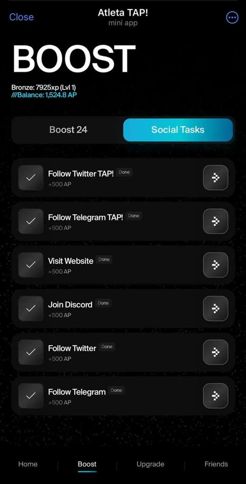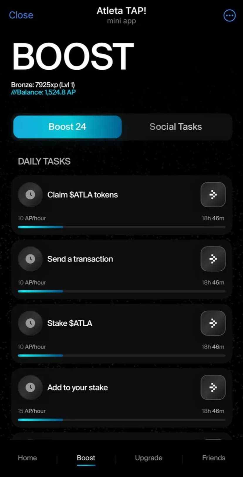 Atleta TAP! предлагает исследовать тестовую сеть новой L1 и получать опыт (XP) через геймифицированные спортивные задания. Приложение сочетает тестнет-активности с игровыми элементами и статистикой прогресса.