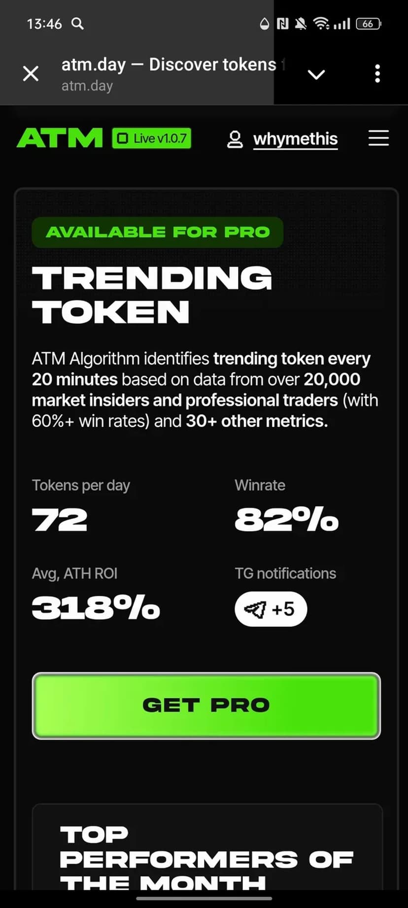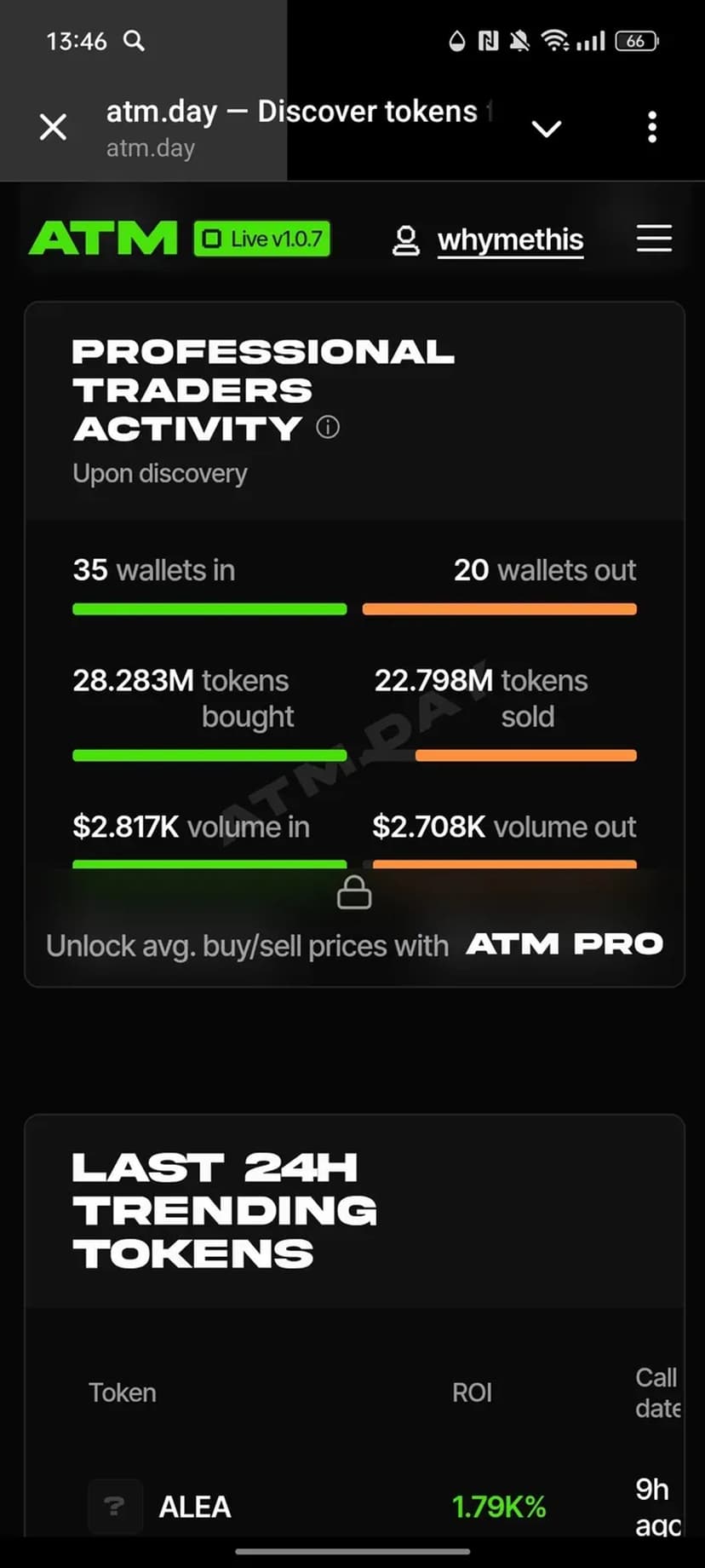 ATM.day выявляет перспективные трендовые токены на основе анализа активности более 20 000 рыночных инсайдеров и профессиональных трейдеров, а также свыше 30 рыночных метрик.