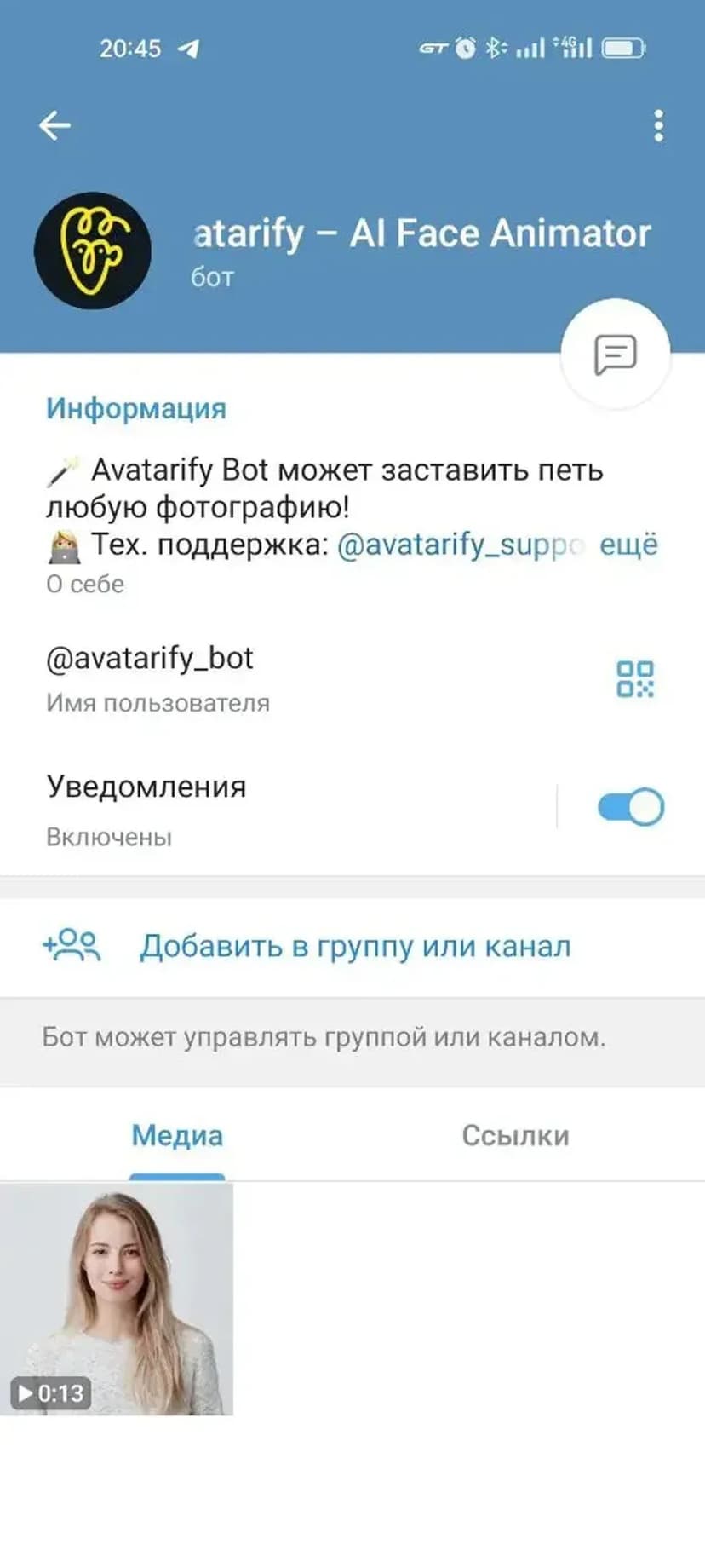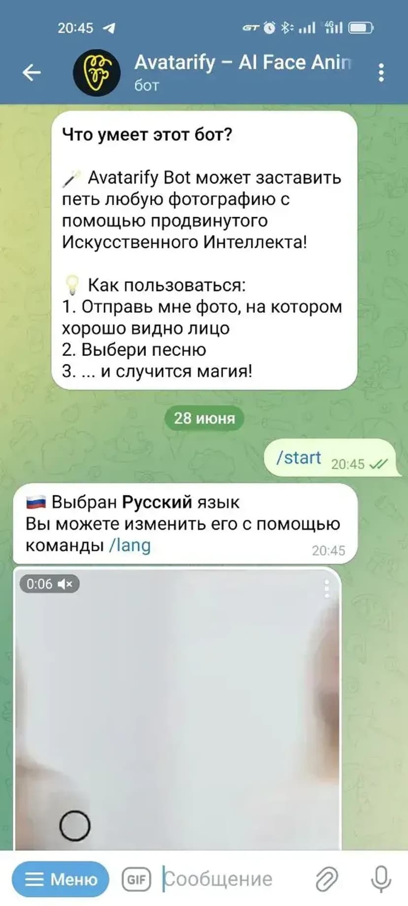 *Нажимая "Открыть в Telegram", вы перейдете к приложению Avatarify в мессенджере Telegram