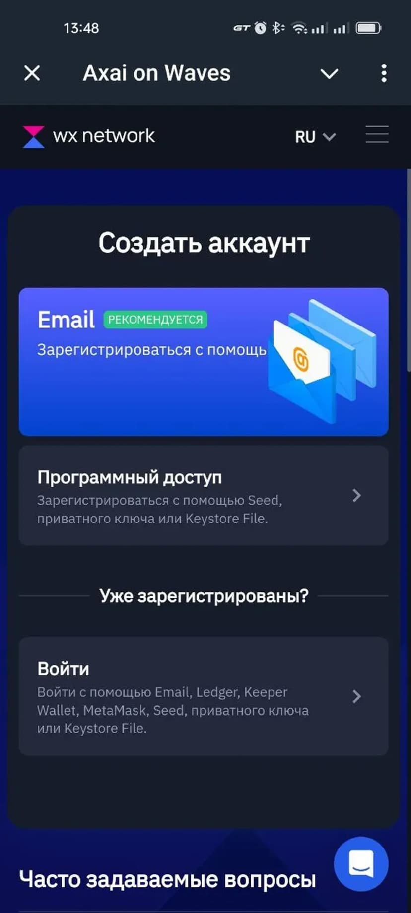 *Нажимая "Открыть в Telegram", вы перейдете к приложению Axai on Waves bot в мессенджере Telegram