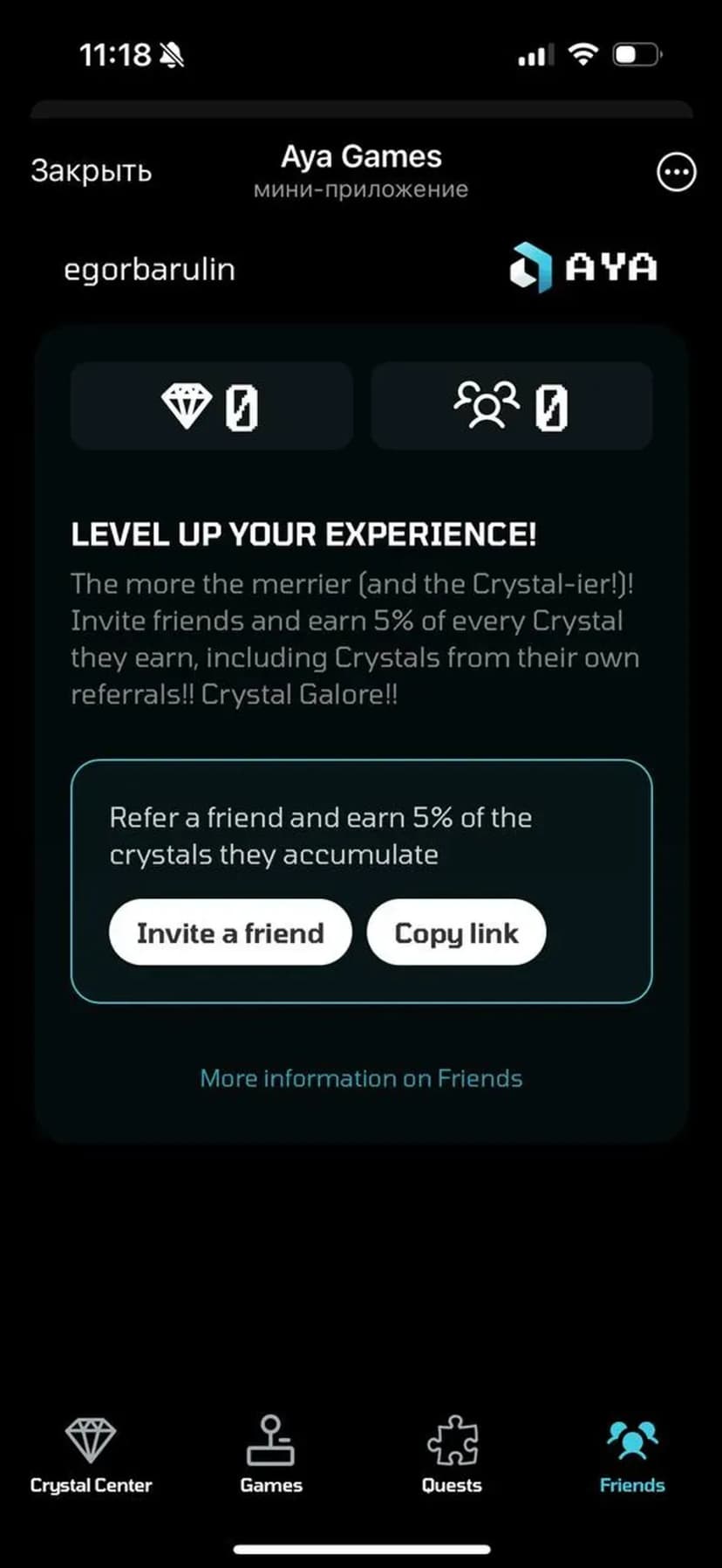 Aya Games — мини‑приложение в Telegram, где за выполнение простых игровых заданий начисляются внутриигровые кристаллы. Накопленные кристаллы используются для квалификации на будущие раздачи токенов от партнёрских блокчейн‑проектов и для участия в собственном пуле наград Aya.