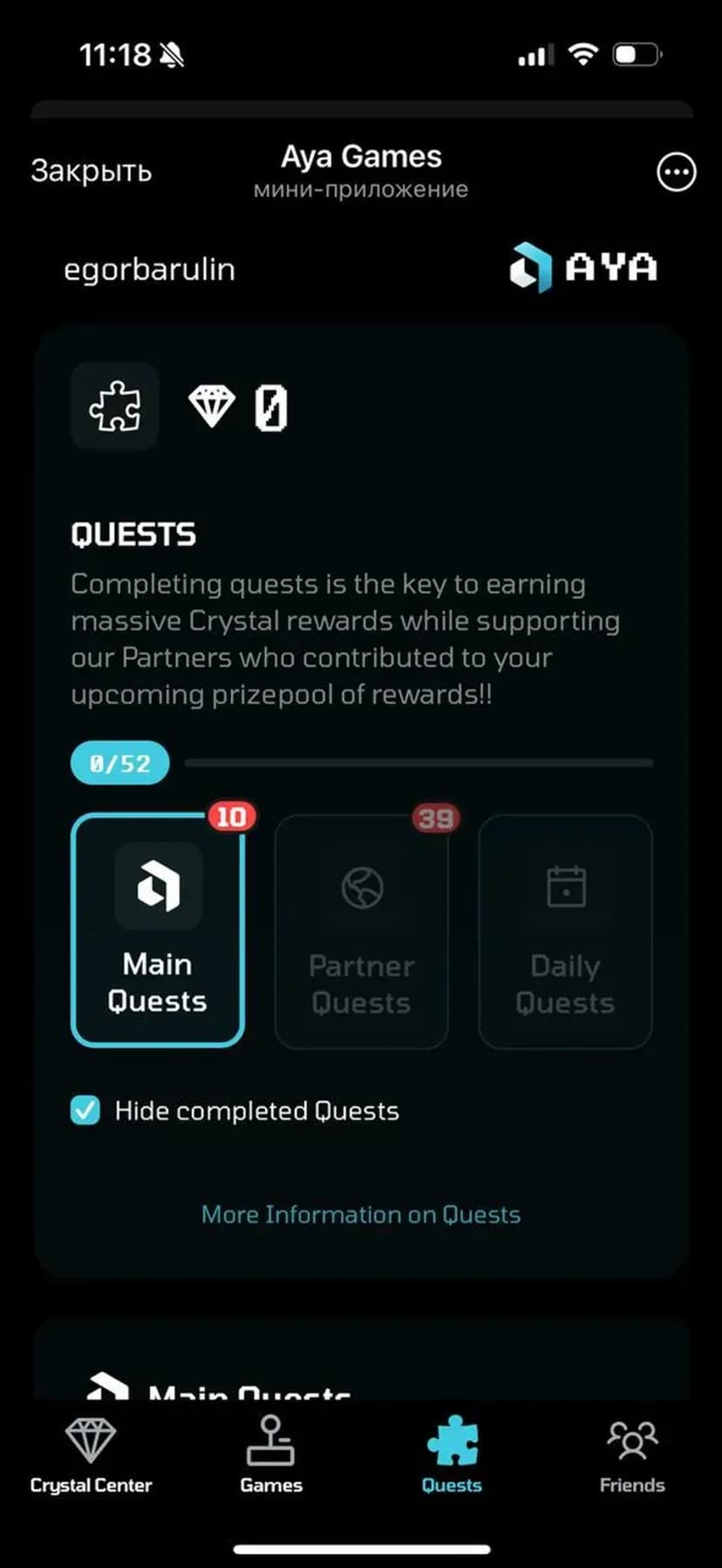 Зарабатывайте внутриигровые кристаллы в простых играх и претендуйте на партнёрские airdrop и награды