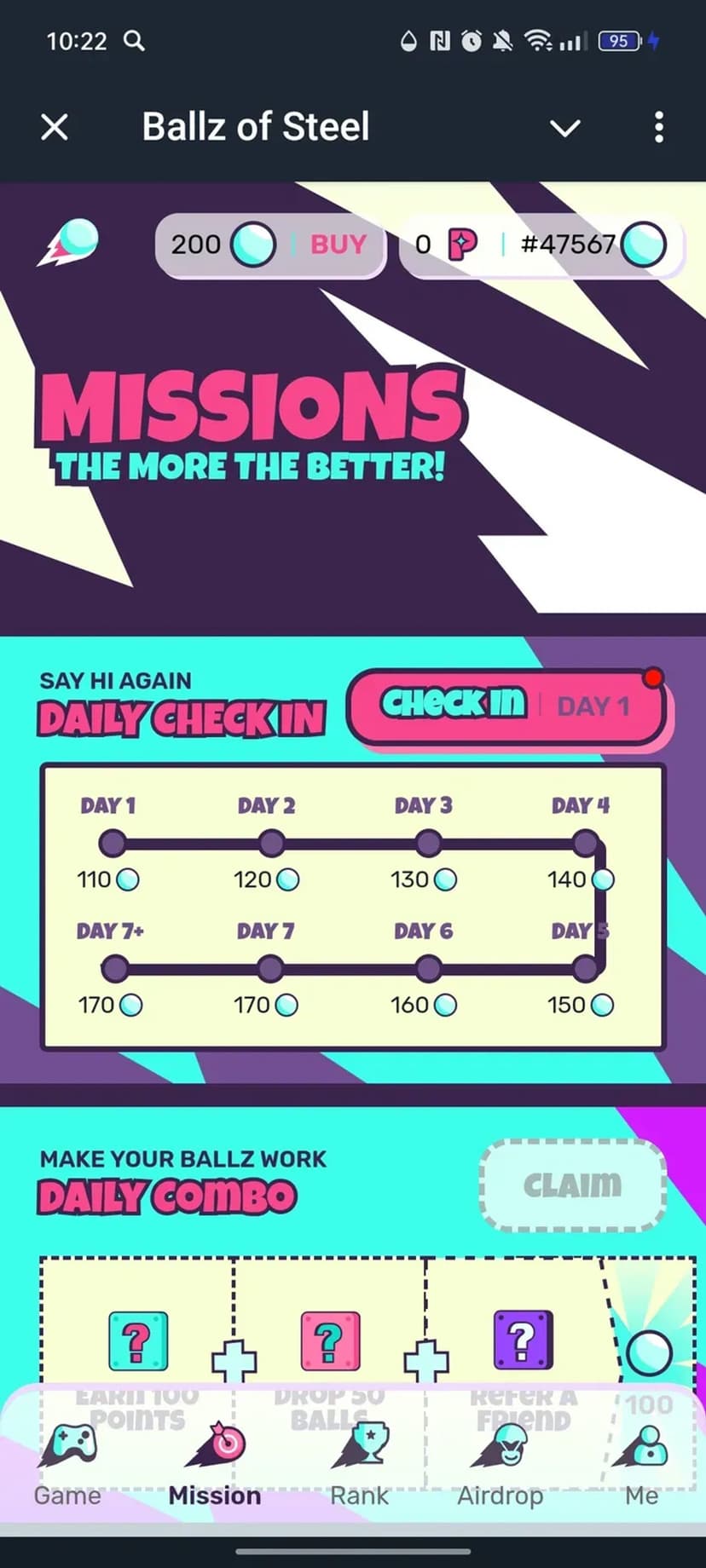 - Как получать ballz: выполнение разнообразных заданий и ежедневные чек‑ины.