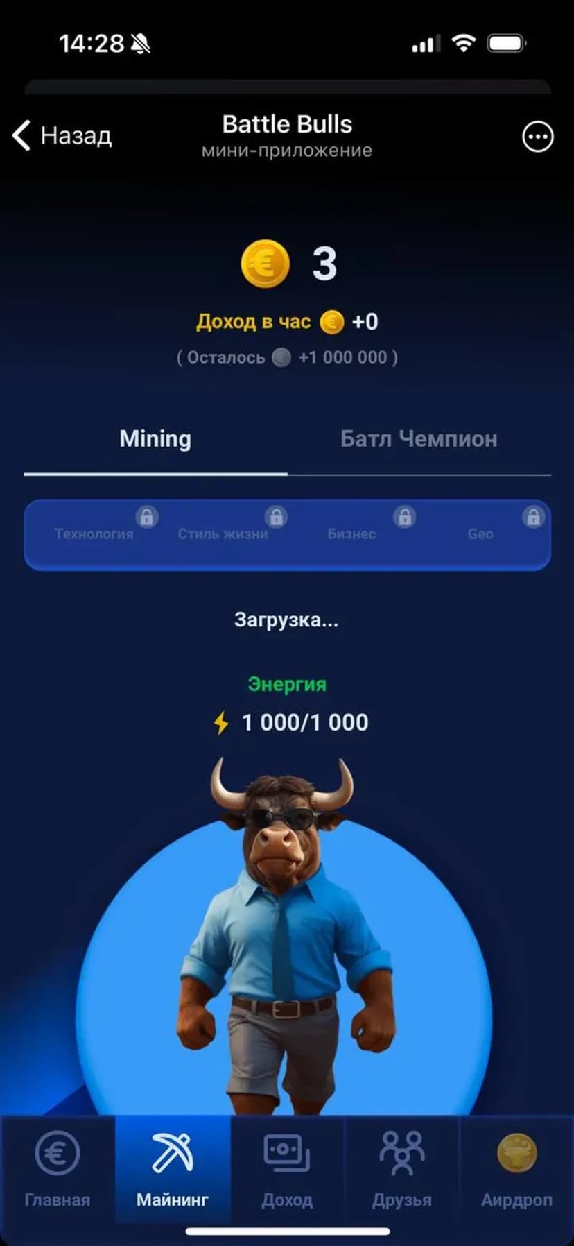 Battle Bulls — бесплатная Play-to-Earn мини-игра, где вы развиваете персонажа-быка, зарабатываете внутриигровые евро и конвертируете их в токены BULL. Запущена в июле 2024 года; привлекла свыше 3 млн пользователей, при этом в августе 2025 года в месяц было 205 969 активных игроков.