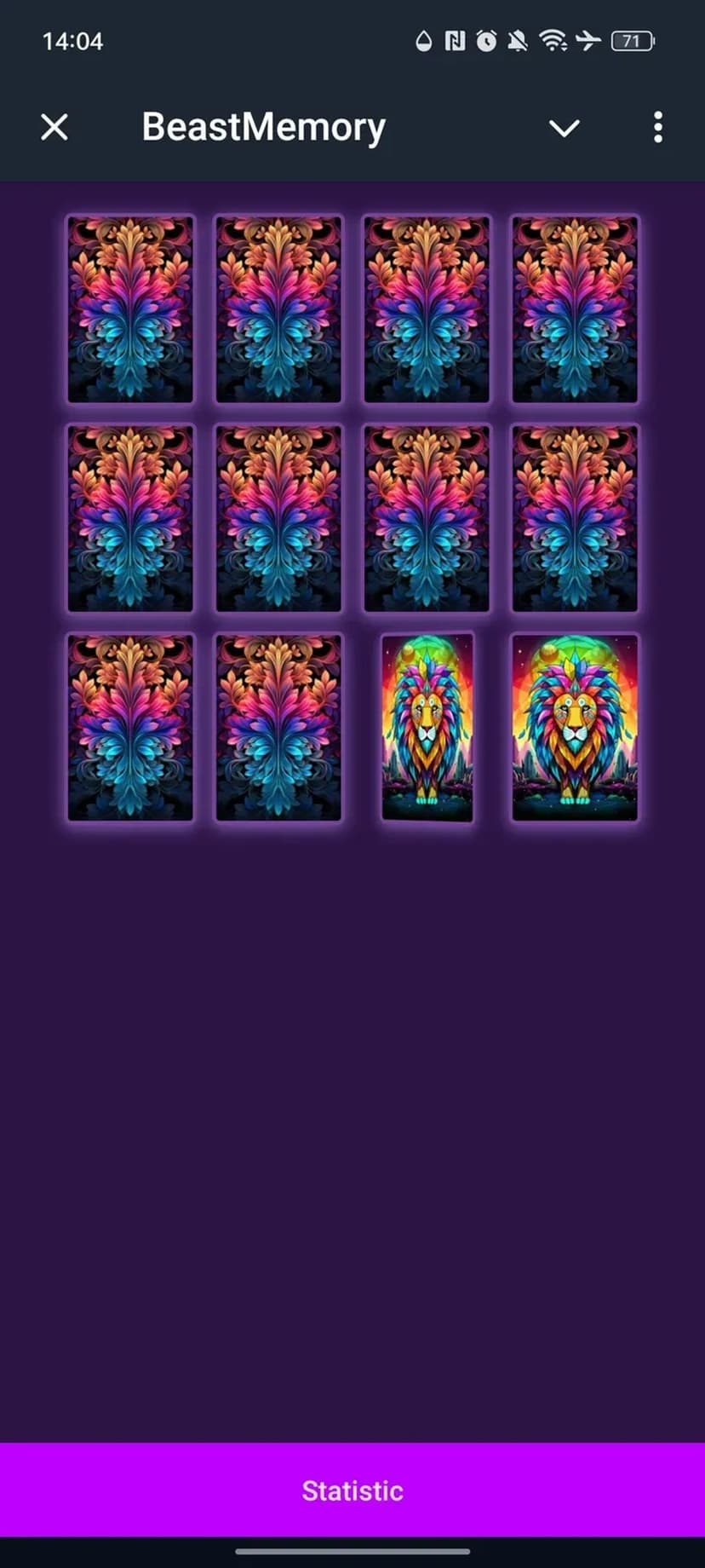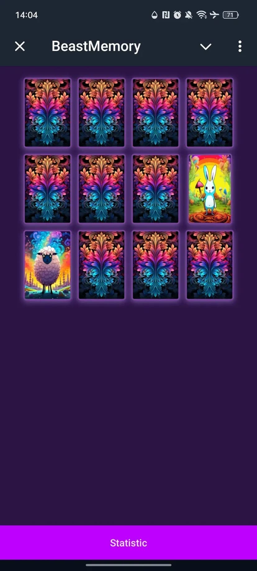 BeastMemory — классическая игра на запоминание парных карт с необычным визуальным оформлением. Карты украшены иллюстрациями мистических и фантастических животных, что делает игровой процесс атмосферным и увлекательным.