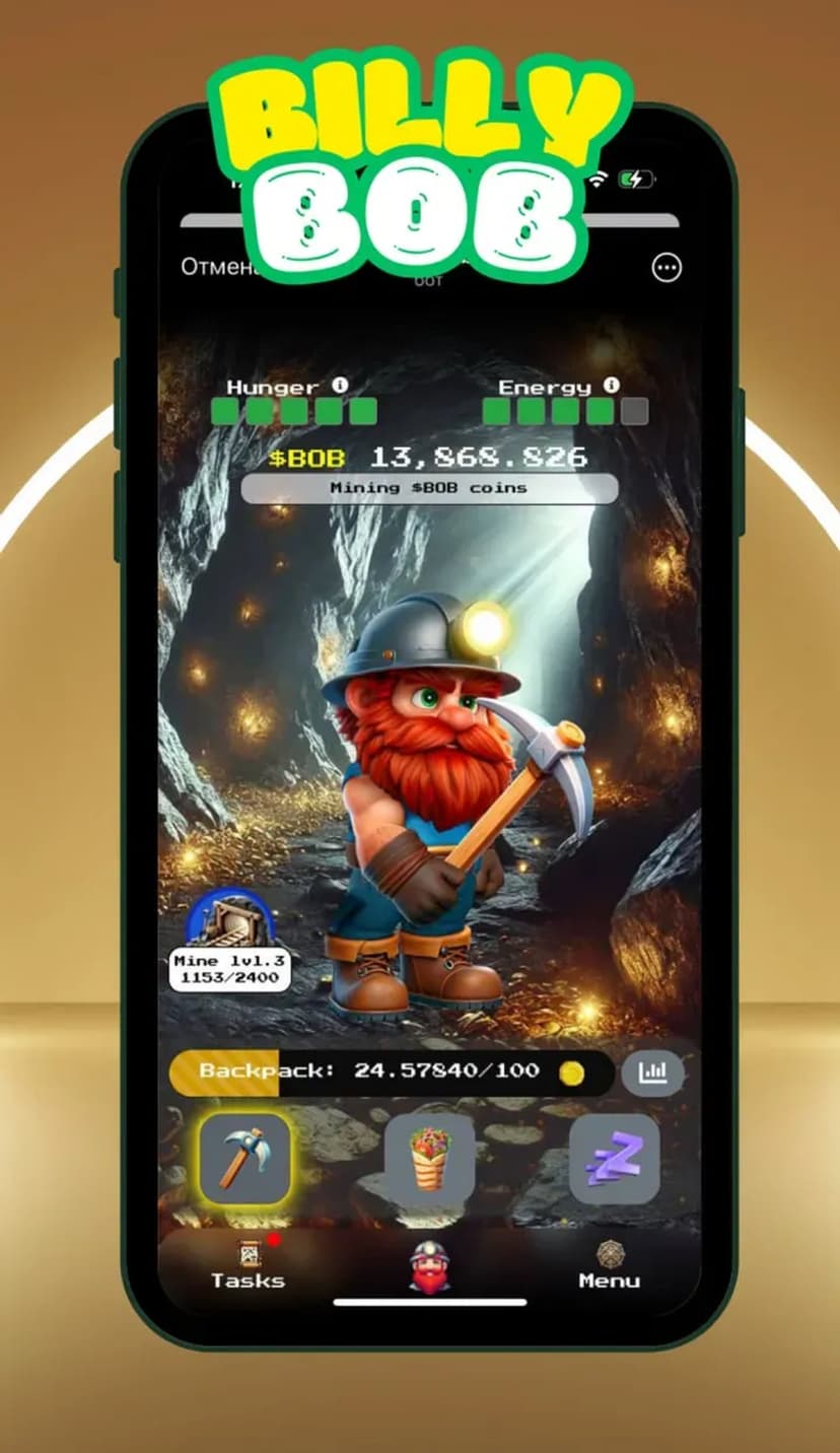 BillyBob — игровой симулятор майнинга криптовалют: управляйте виртуальными установками, добывайте монеты и улучшайте оборудование без реальных вложений.