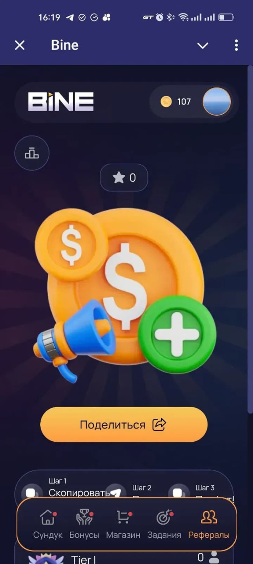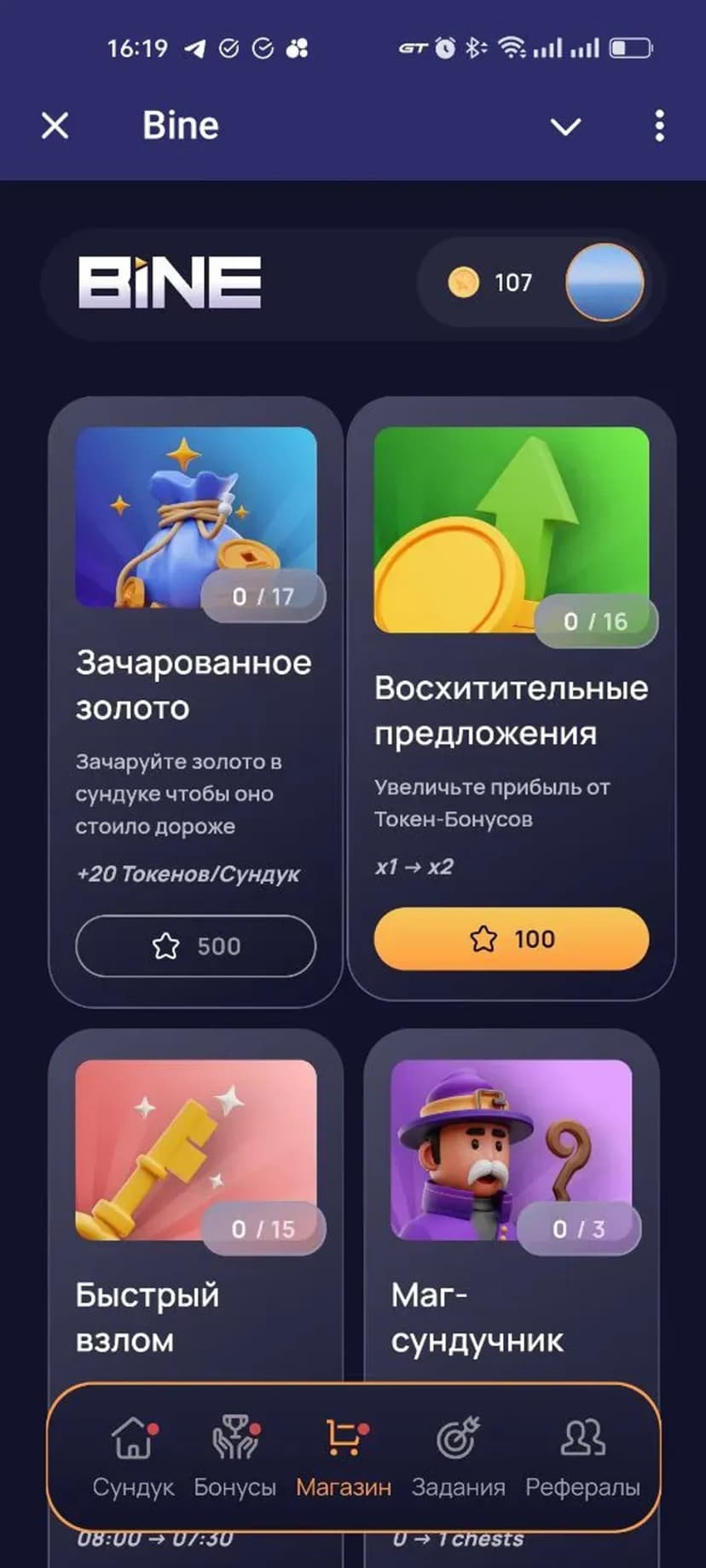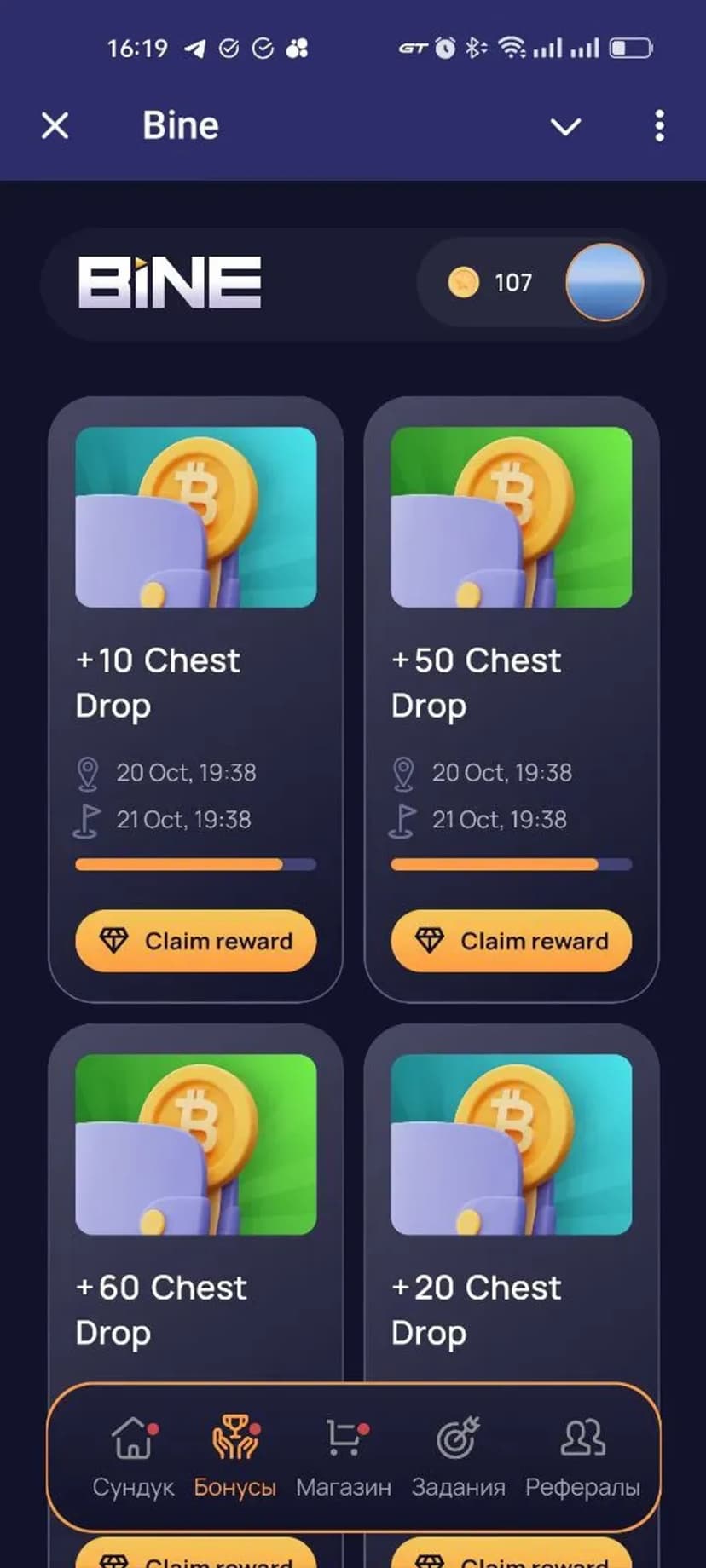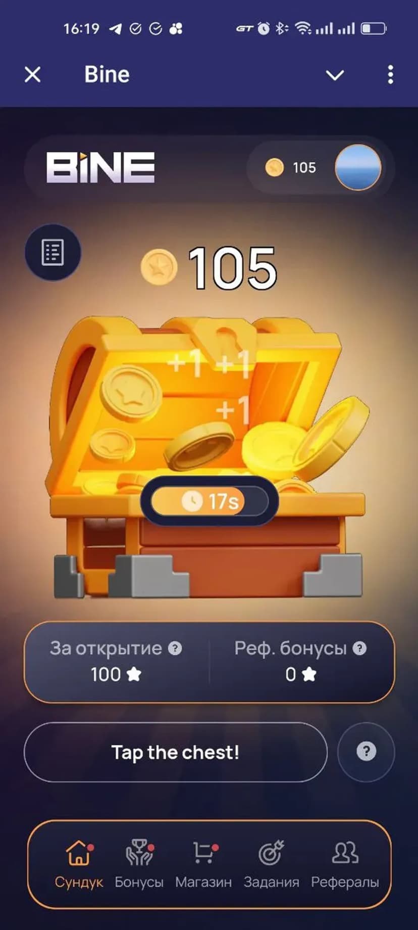 Bine — мини‑приложение для геймификации и получения цифровых наград: простые задания, сундуки с лутом и внутриигровые токены и NFT.