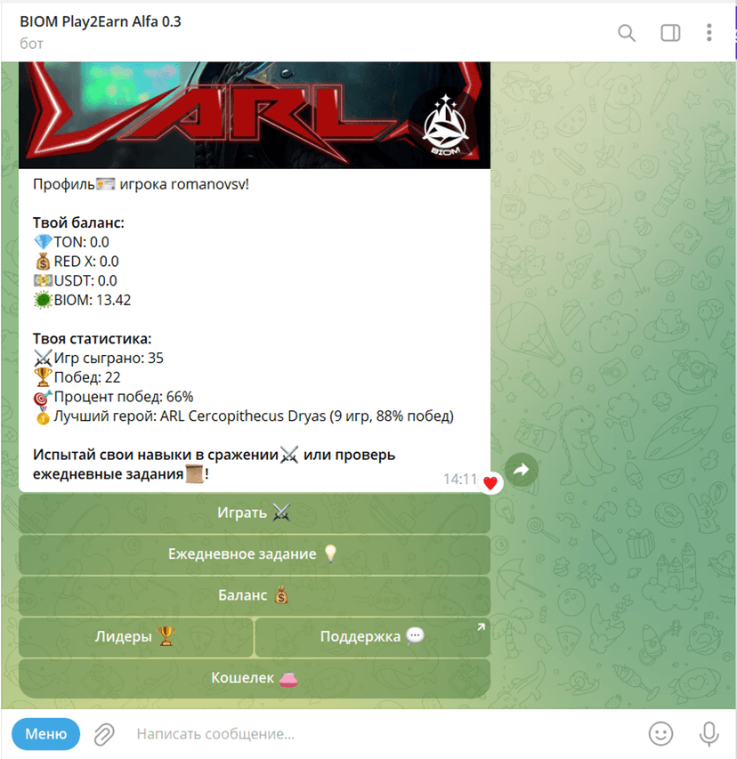 *Нажимая "Открыть в Telegram", вы перейдете к приложению BIOM Play2Earn в мессенджере Telegram