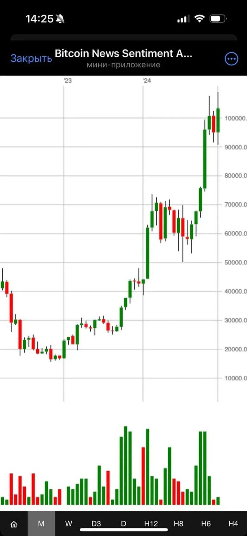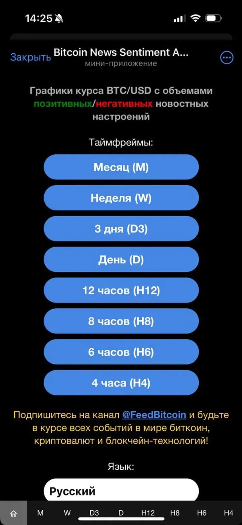 *Нажимая "Открыть в Telegram", вы перейдете к приложению Bitcoin News Sentiment Analysis в мессенджере Telegram