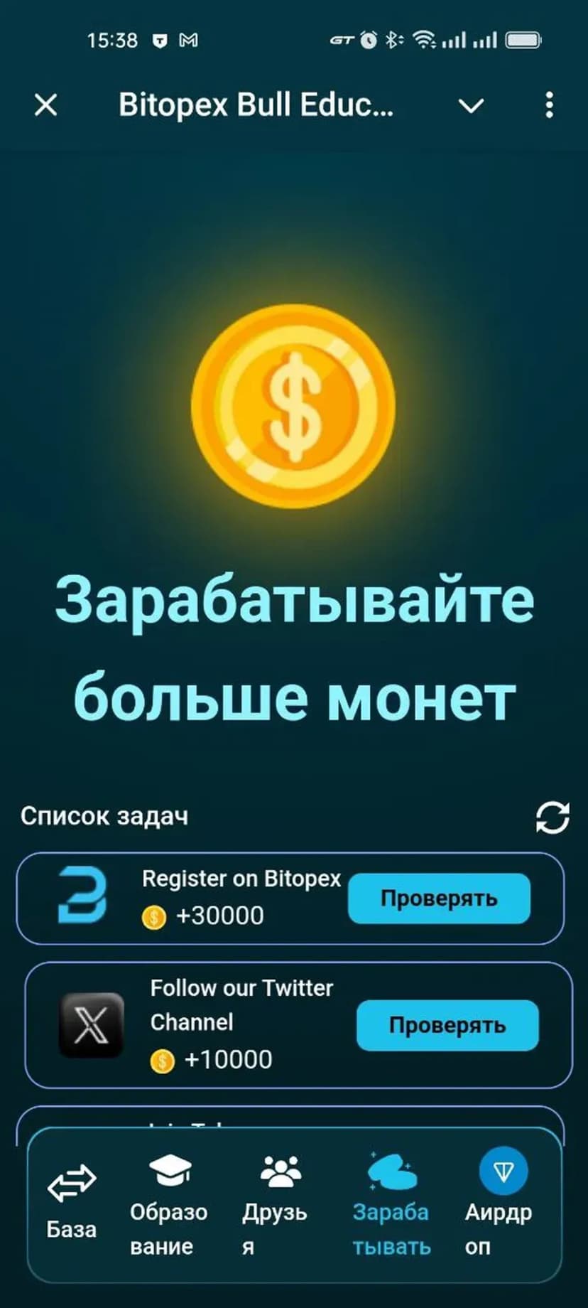 *Нажимая "Открыть в Telegram", вы перейдете к приложению Bitopex Bull Education TapGame в мессенджере Telegram