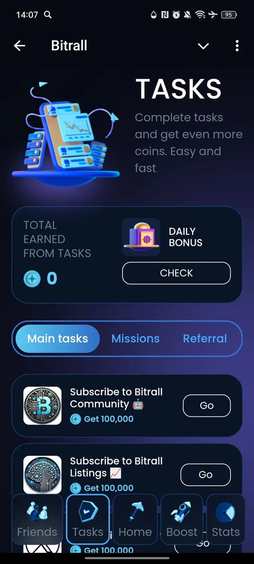 - Заработок токенов: вознаграждения за ежедневный вход, выполнение миссий и приглашение друзей.