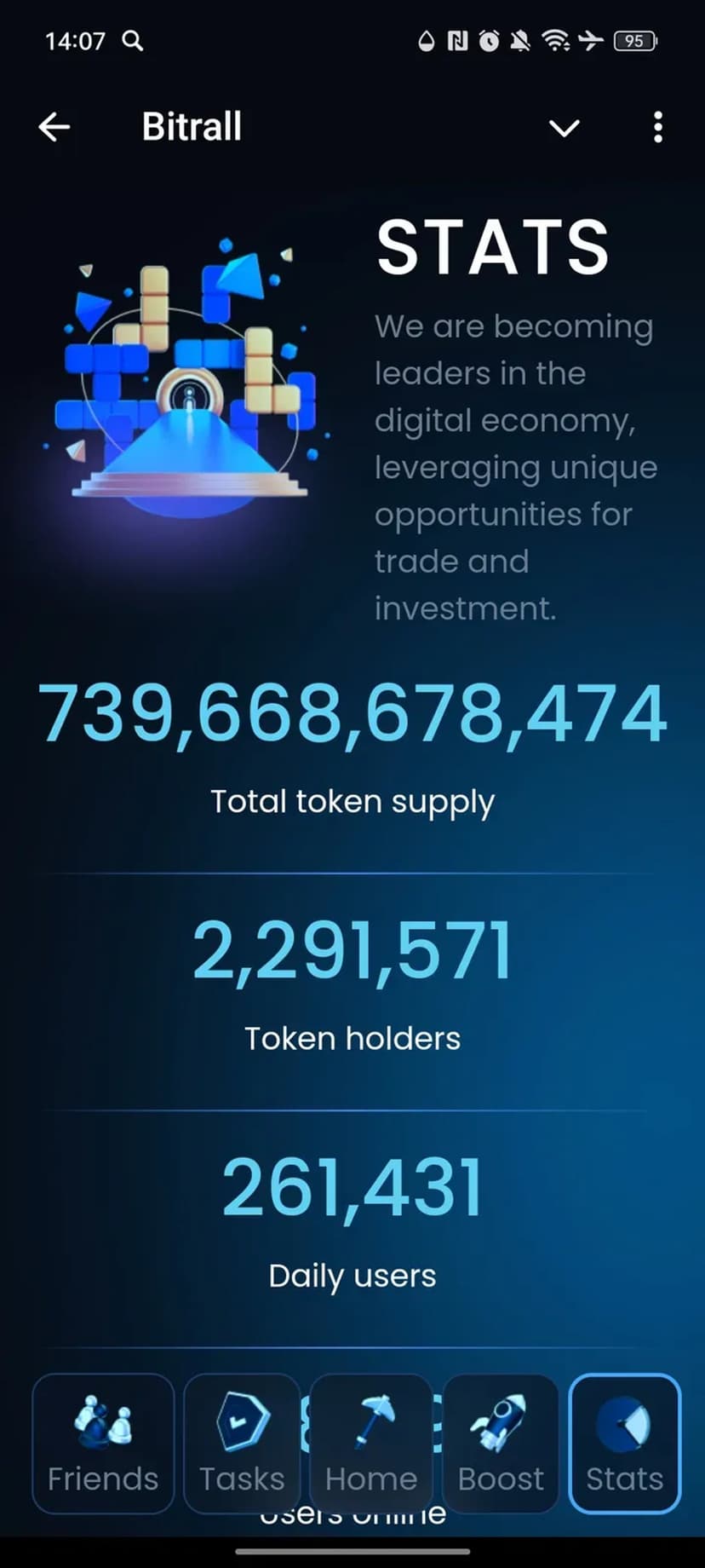 Подходит трейдерам, криптоэнтузиастам и пользователям, желающим получать бонусы и участвовать в запуске новой екосистемы через простые ежедневные действия и реферальные механики.